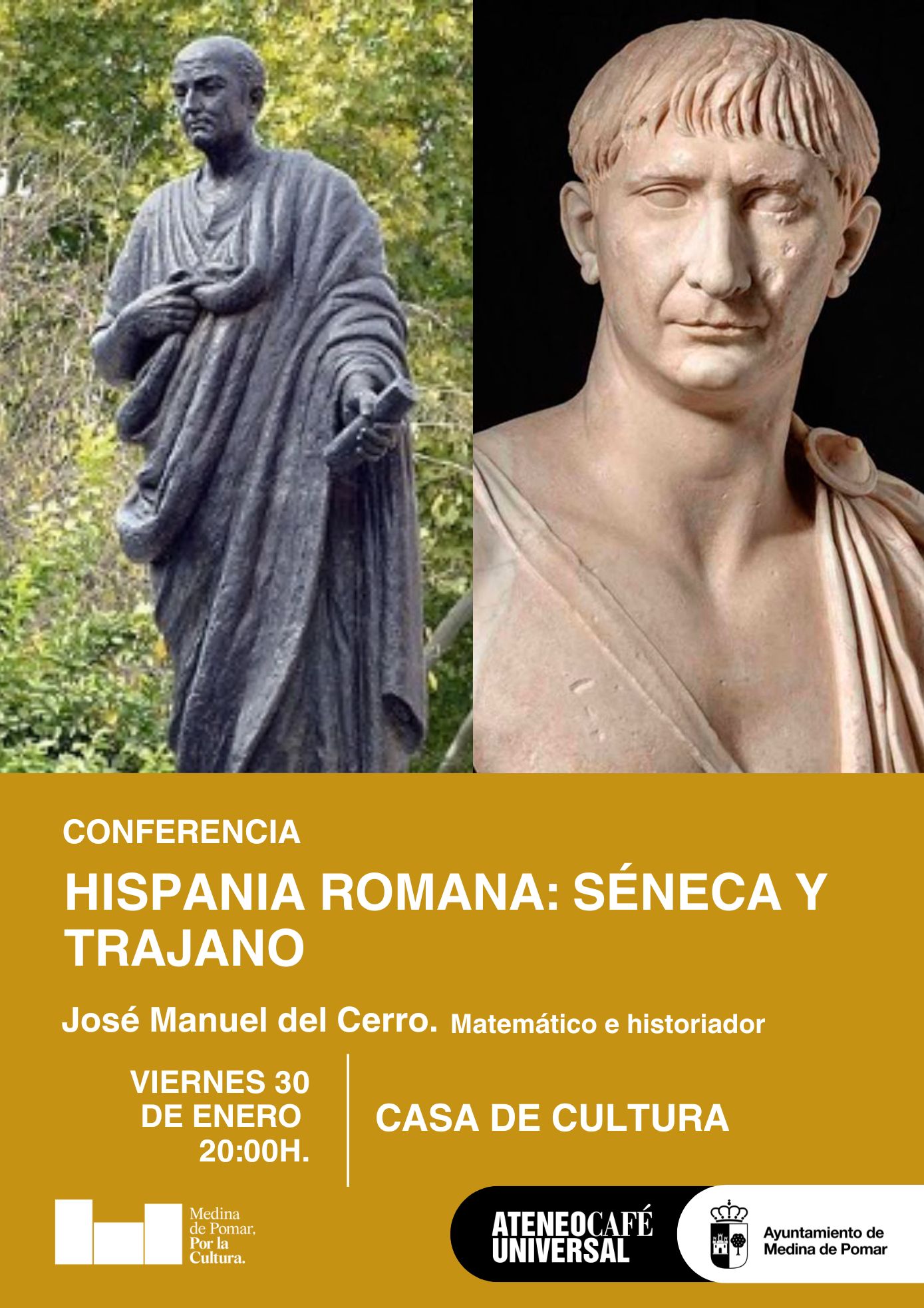 Hispania Romana; Séneca y Trajano. José Manuel del Cerro. Matemático e historiador. Viernes 30 de enero a las 20:00 h. Casa de Cultura.