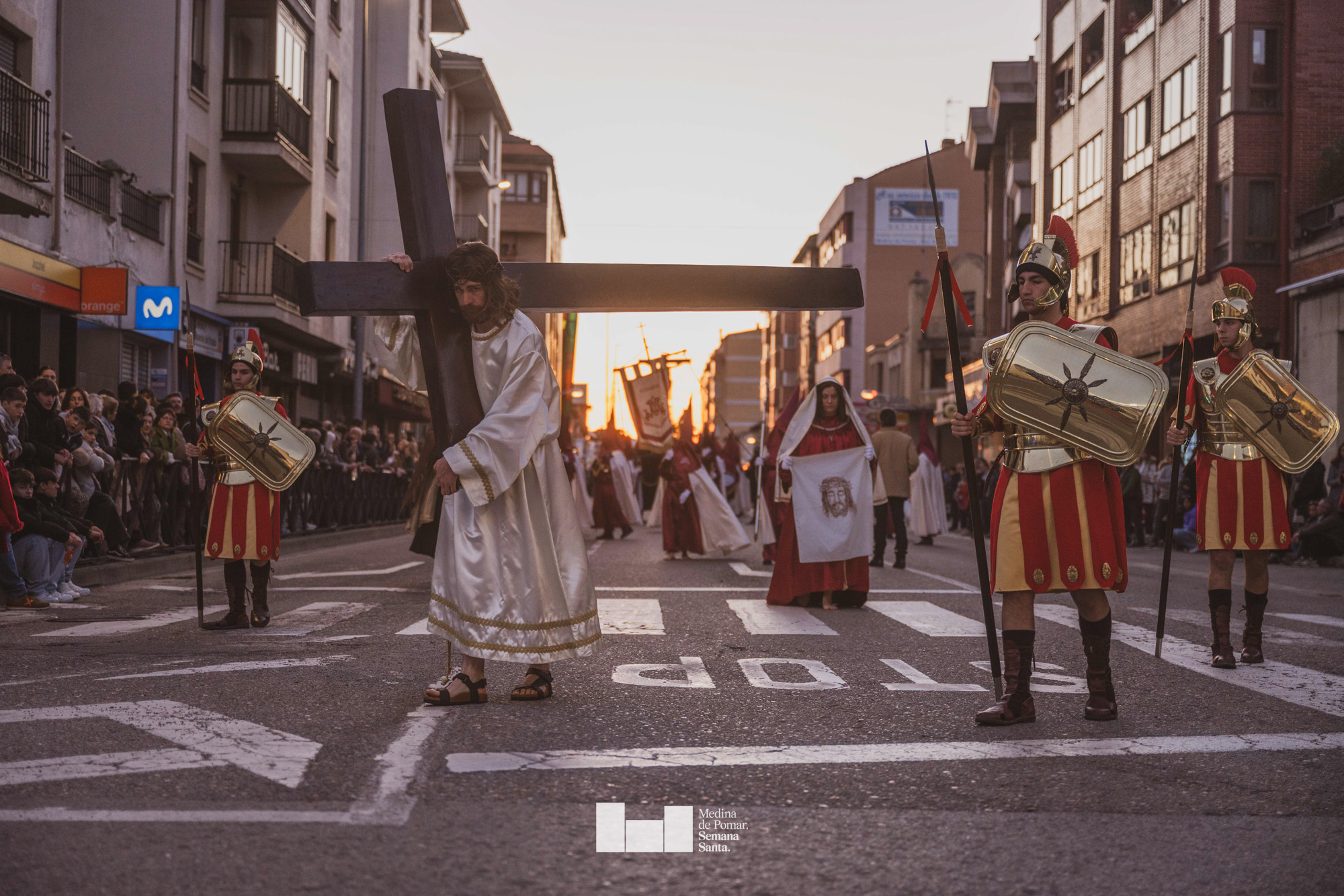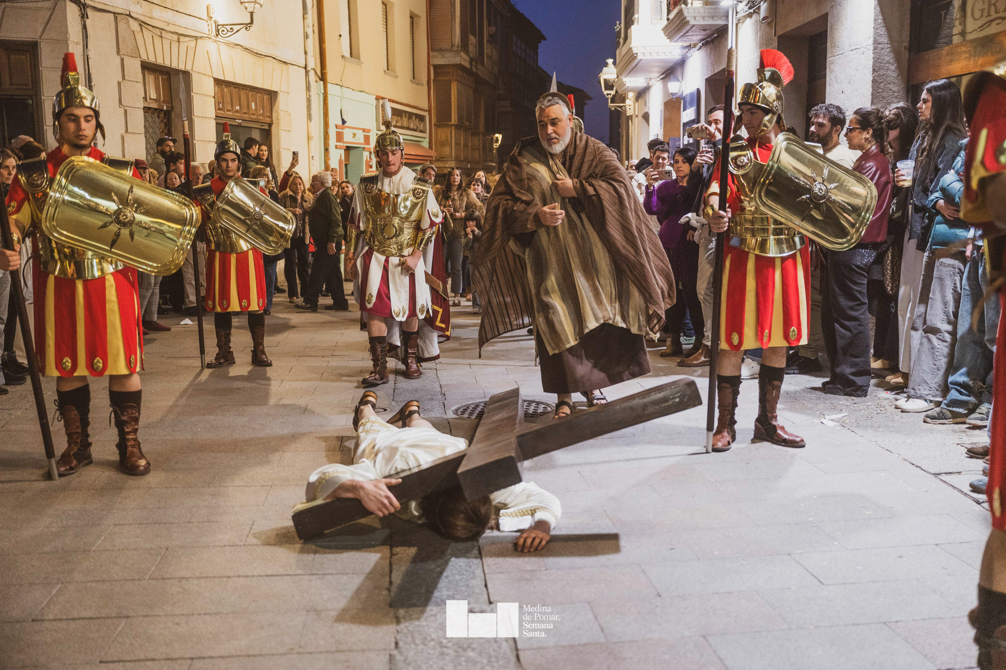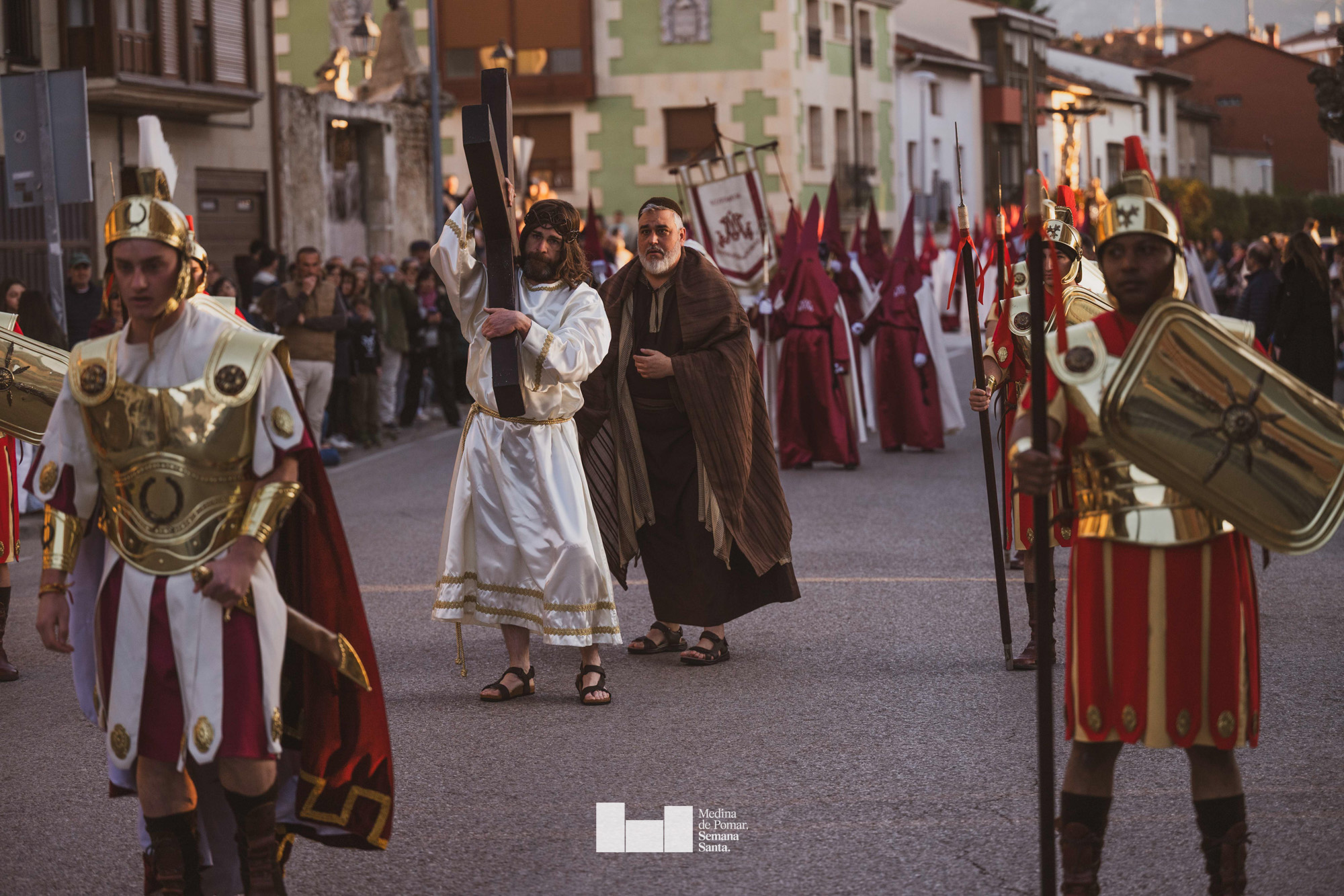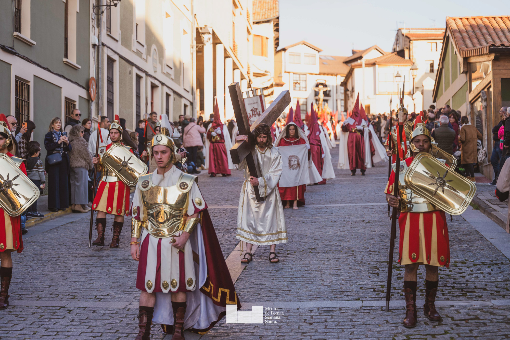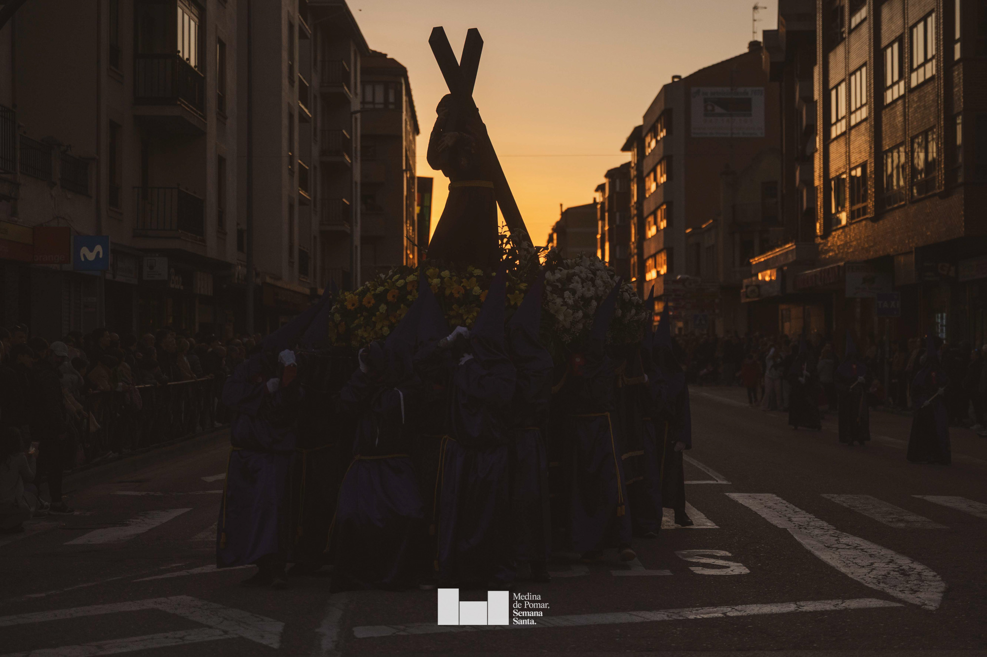 Una multitud de personas se agolpó a lo largo de todo el recorrido en la tarde del Viernes Santo para presenciar el paso de las ocho cofradías con sus pasos así como el Nazareno escoltado por los romanos o la aparición de el nuevo personaje que la procesión ha introducido este año: Simón de Cirene, el Cirineo.
