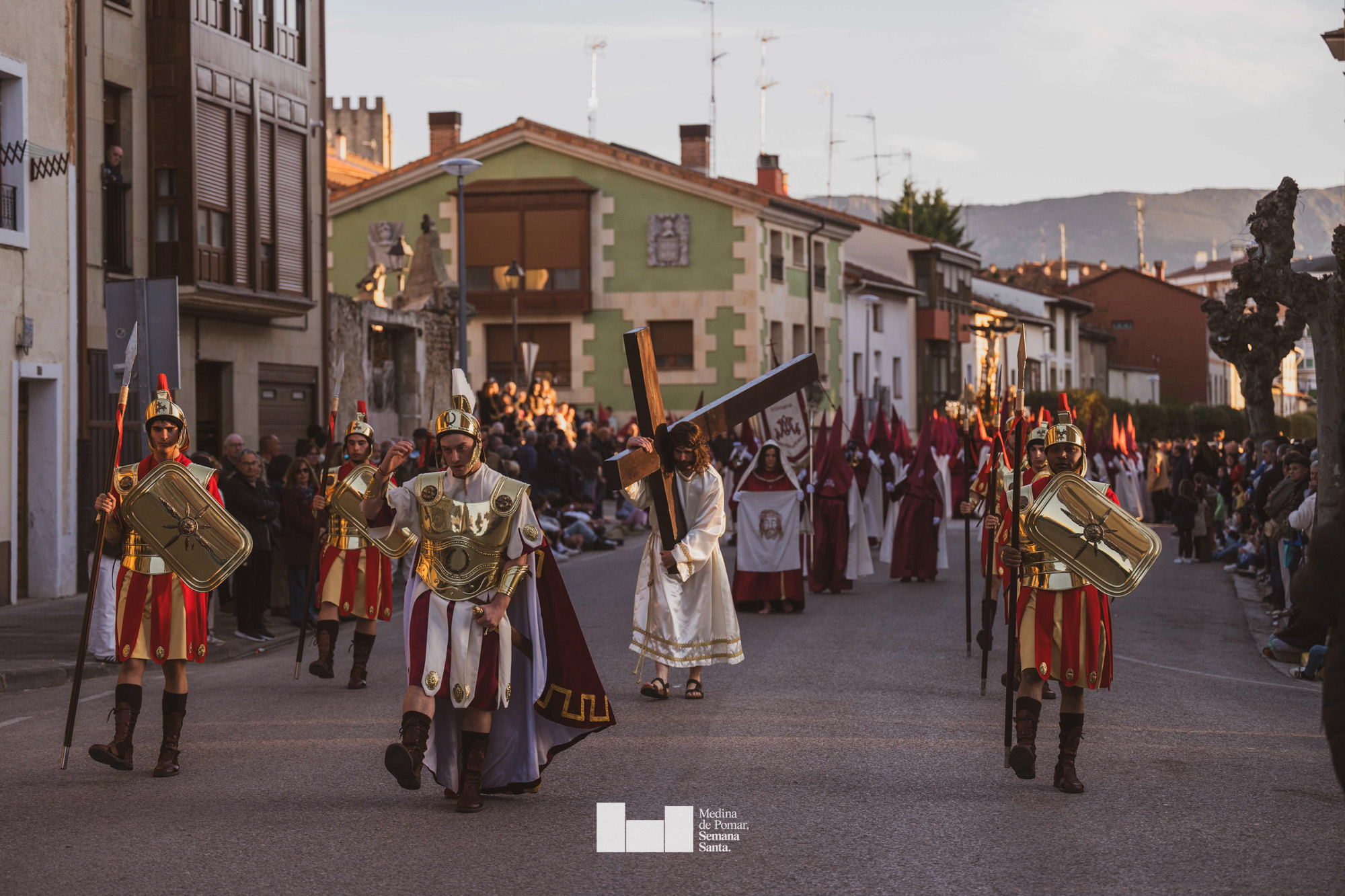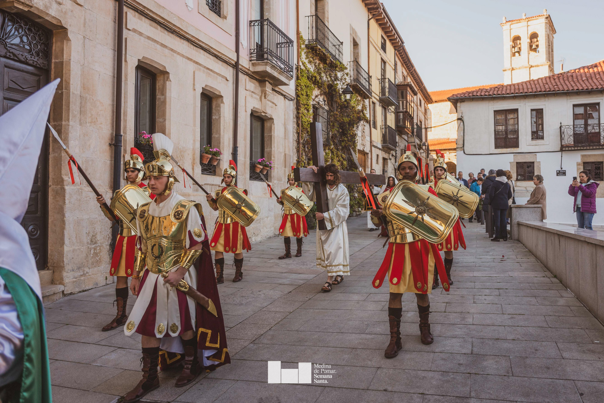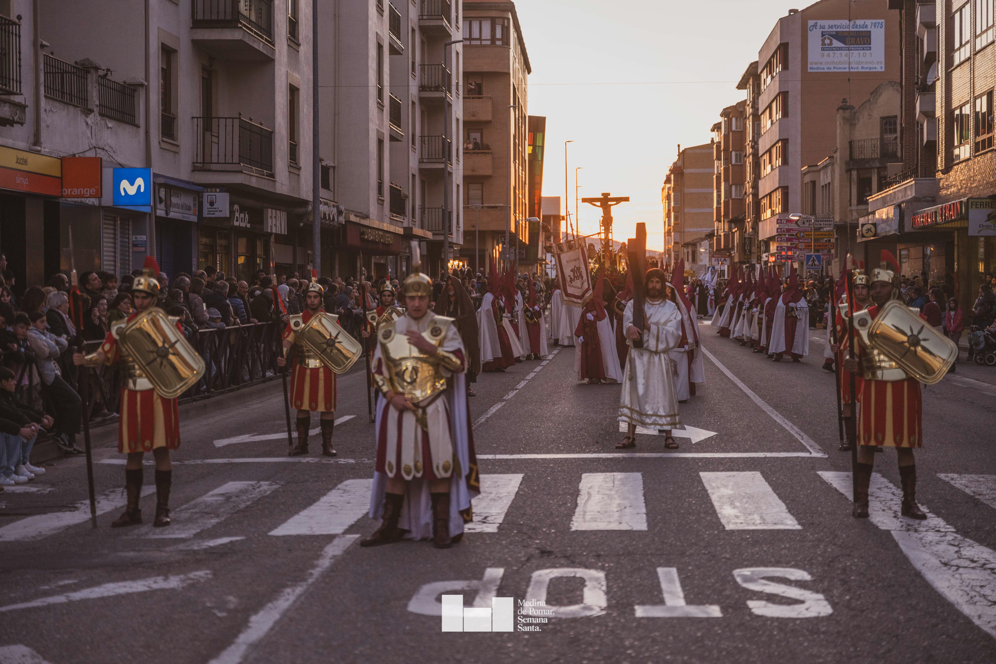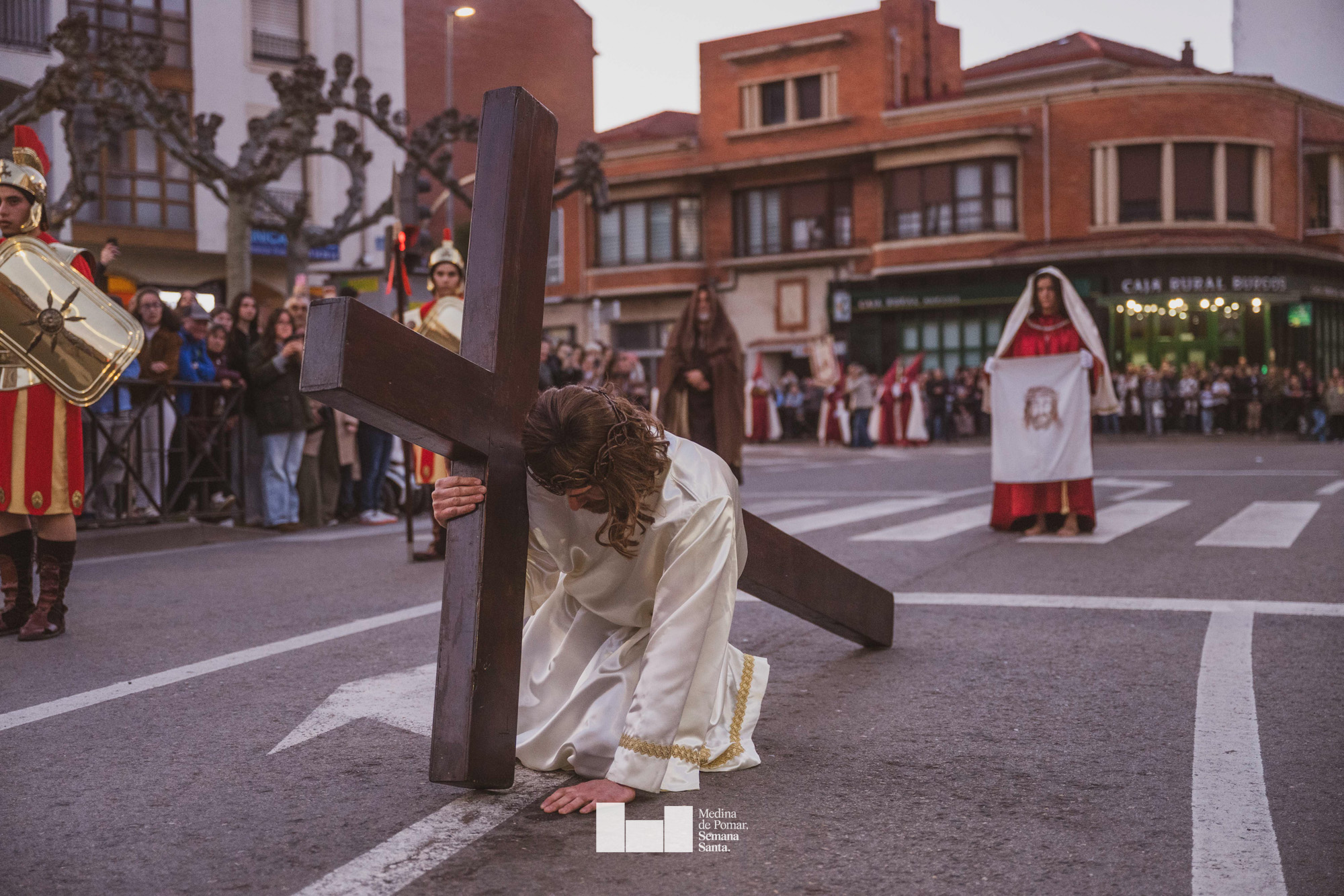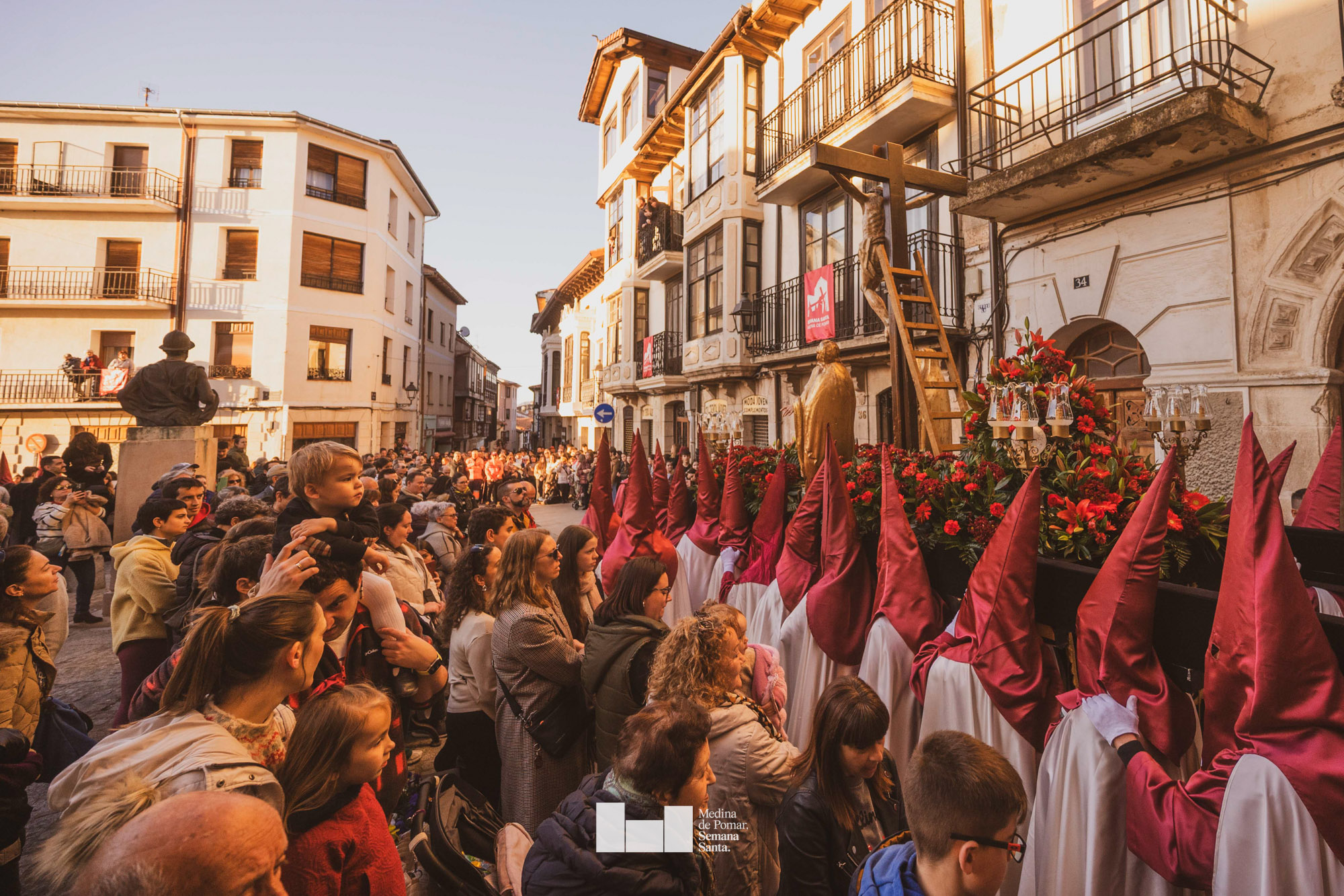 Una multitud de personas se agolpó a lo largo de todo el recorrido en la tarde del Viernes Santo para presenciar el paso de las ocho cofradías con sus pasos así como el Nazareno escoltado por los romanos o la aparición de el nuevo personaje que la procesión ha introducido este año: Simón de Cirene, el Cirineo.