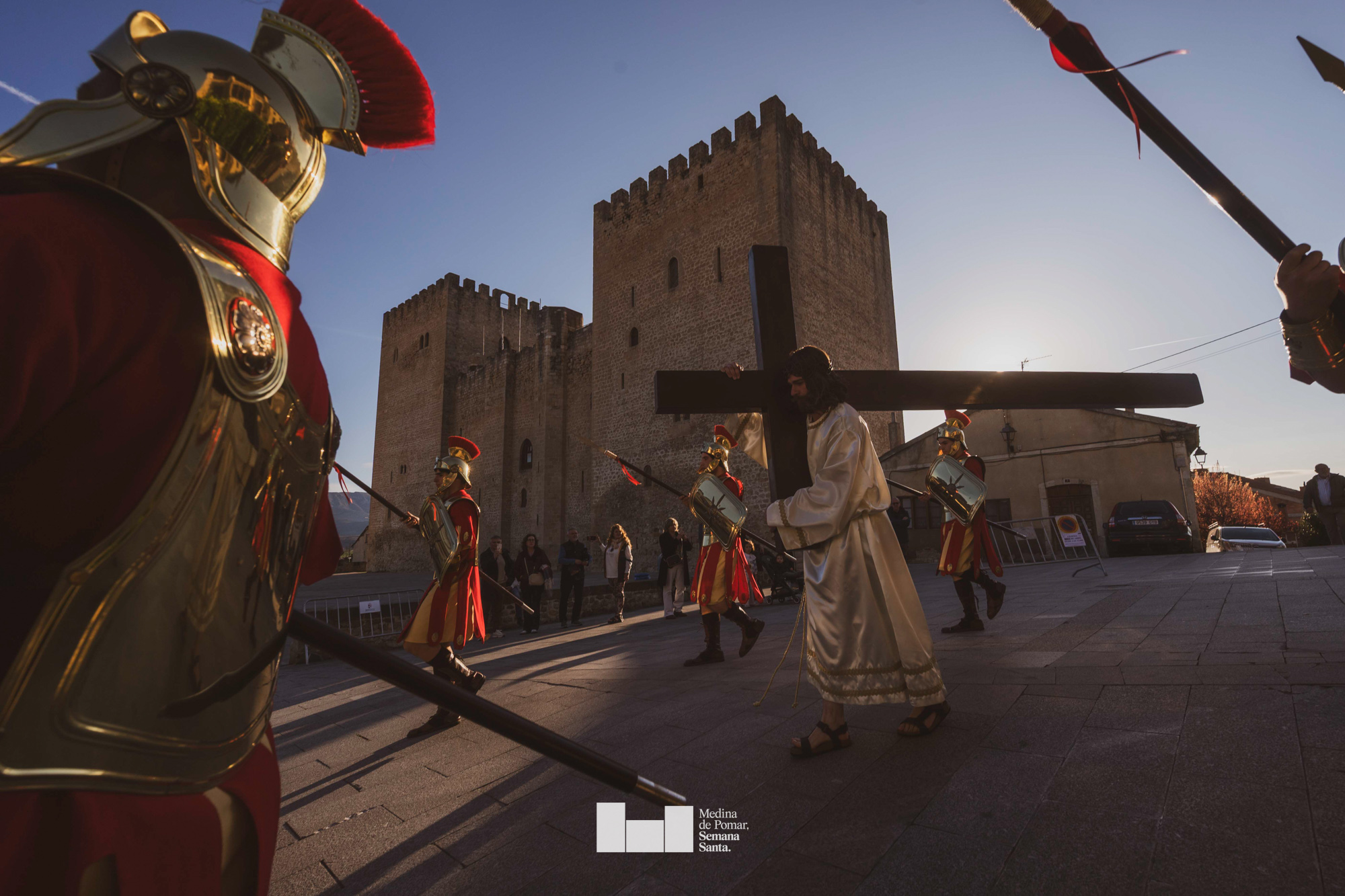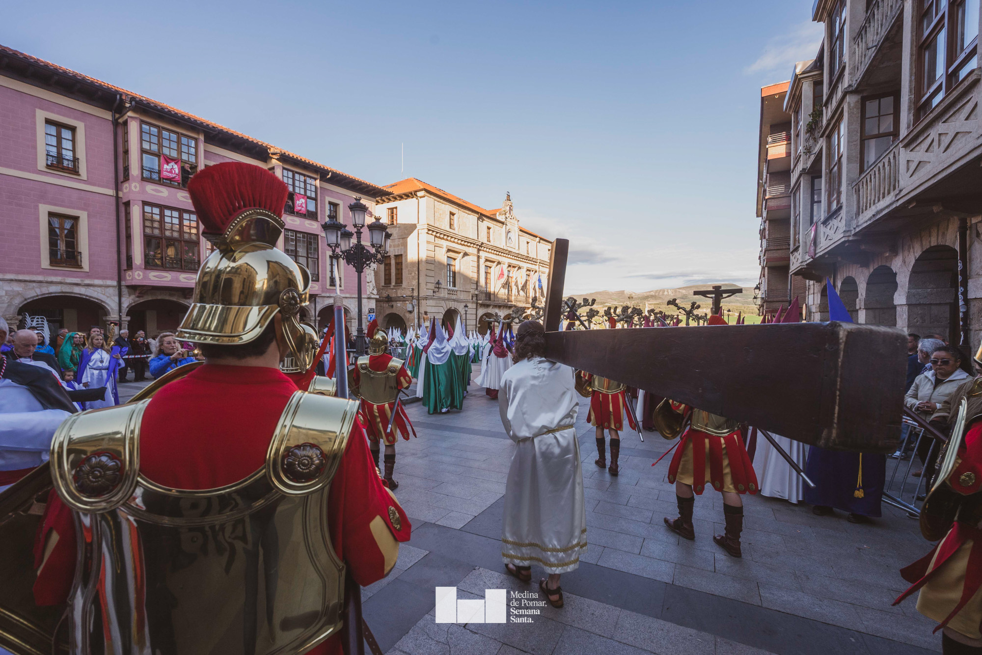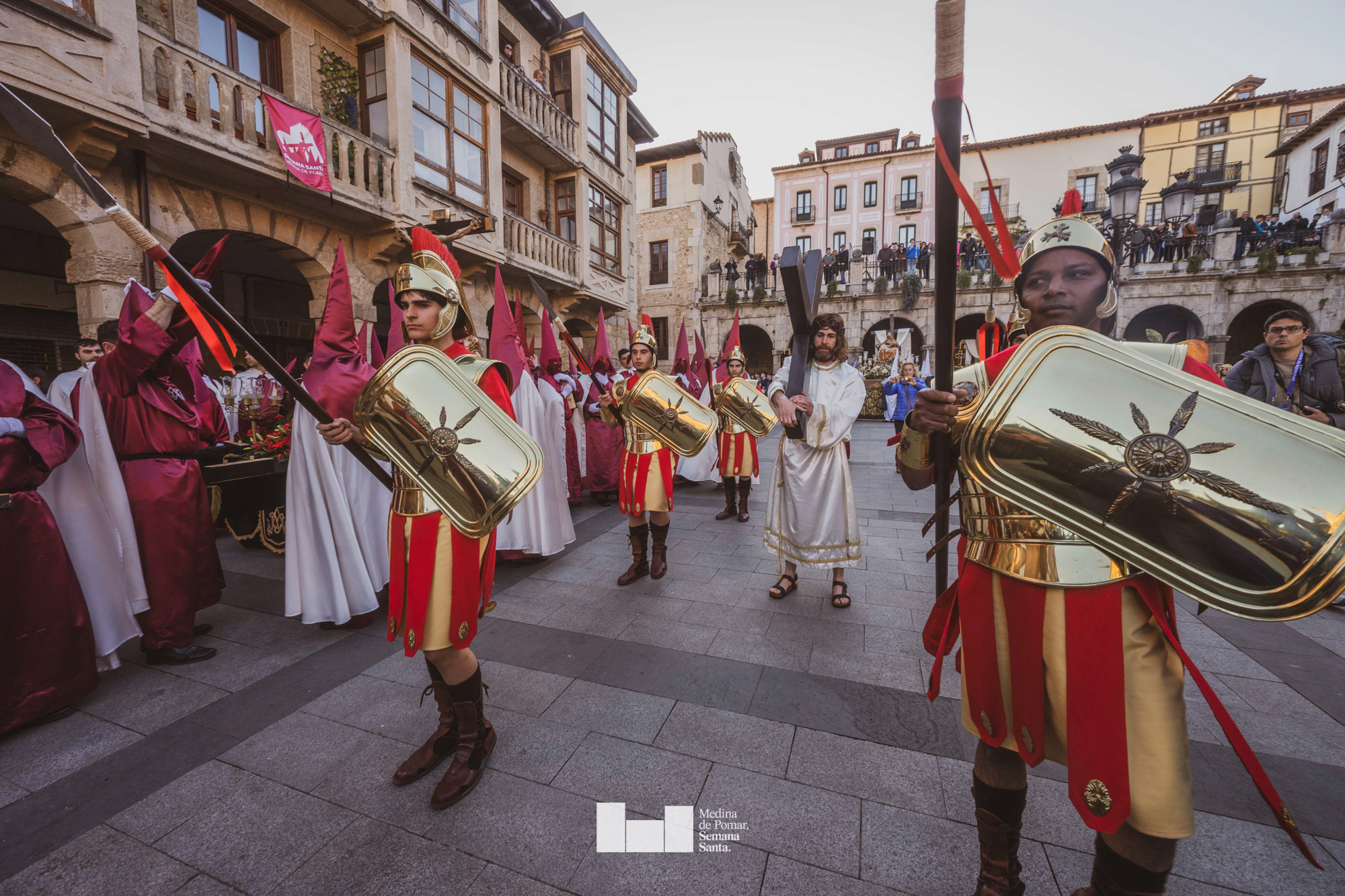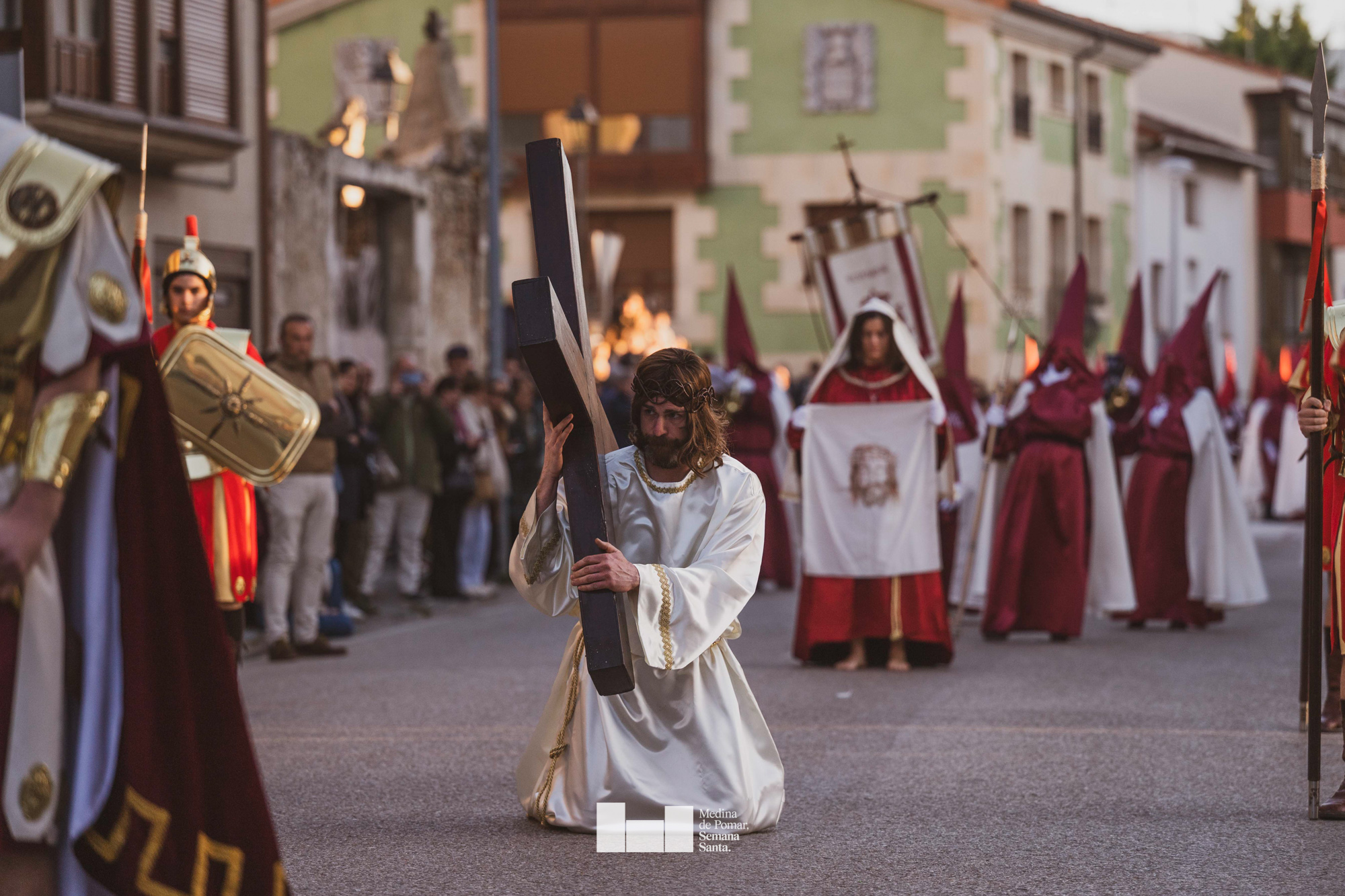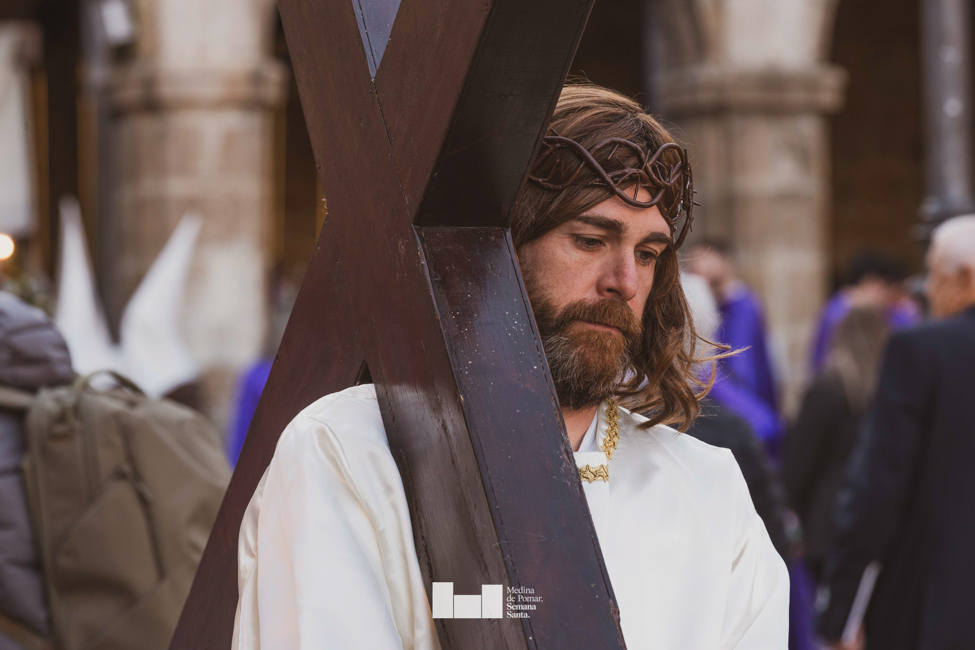 Una multitud de personas se agolpó a lo largo de todo el recorrido en la tarde del Viernes Santo para presenciar el paso de las ocho cofradías con sus pasos así como el Nazareno escoltado por los romanos o la aparición de el nuevo personaje que la procesión ha introducido este año: Simón de Cirene, el Cirineo.