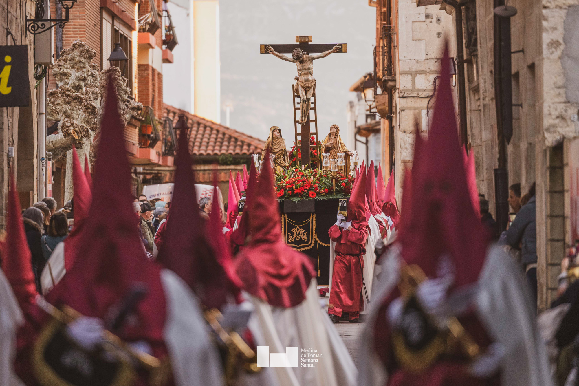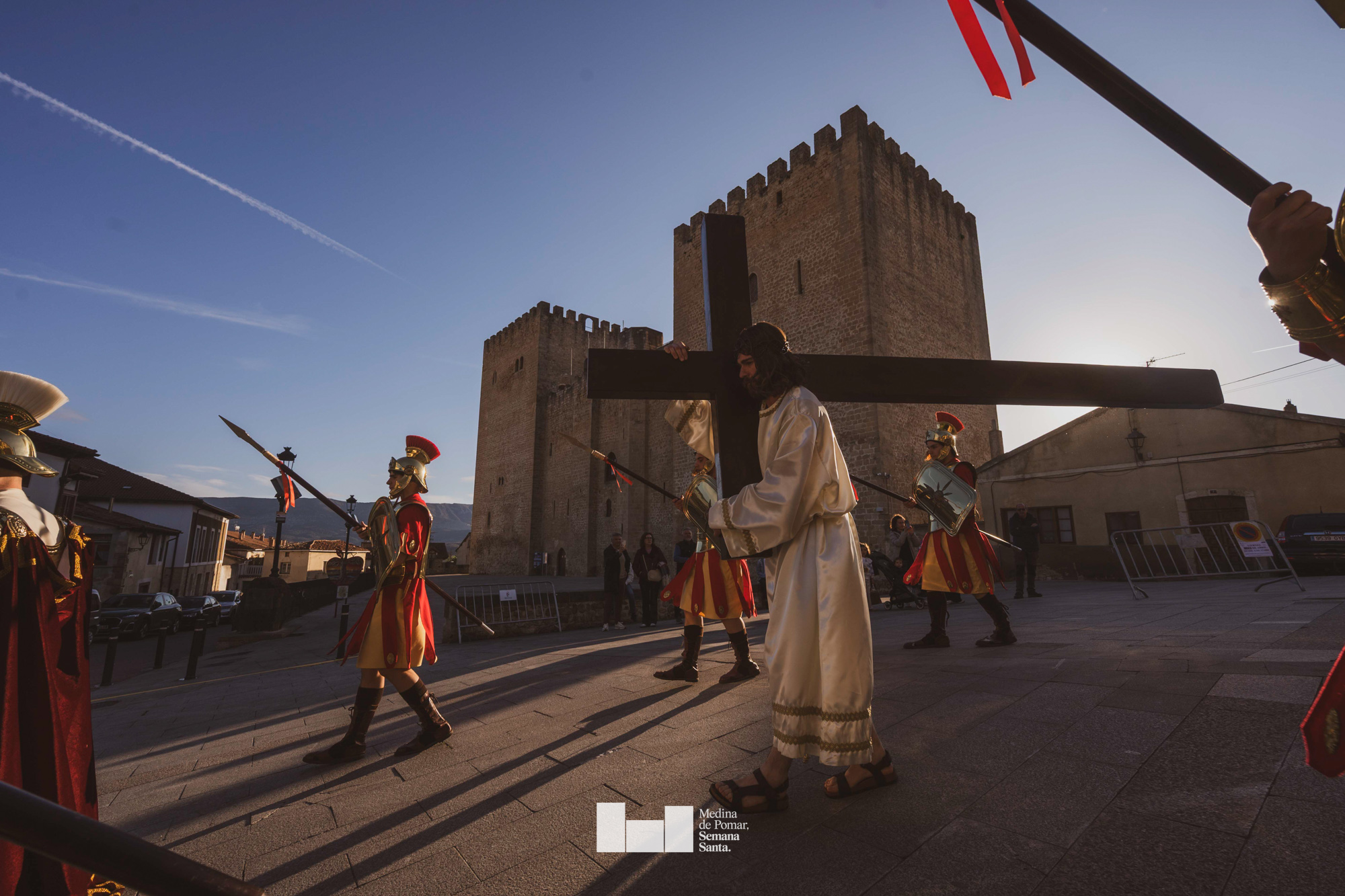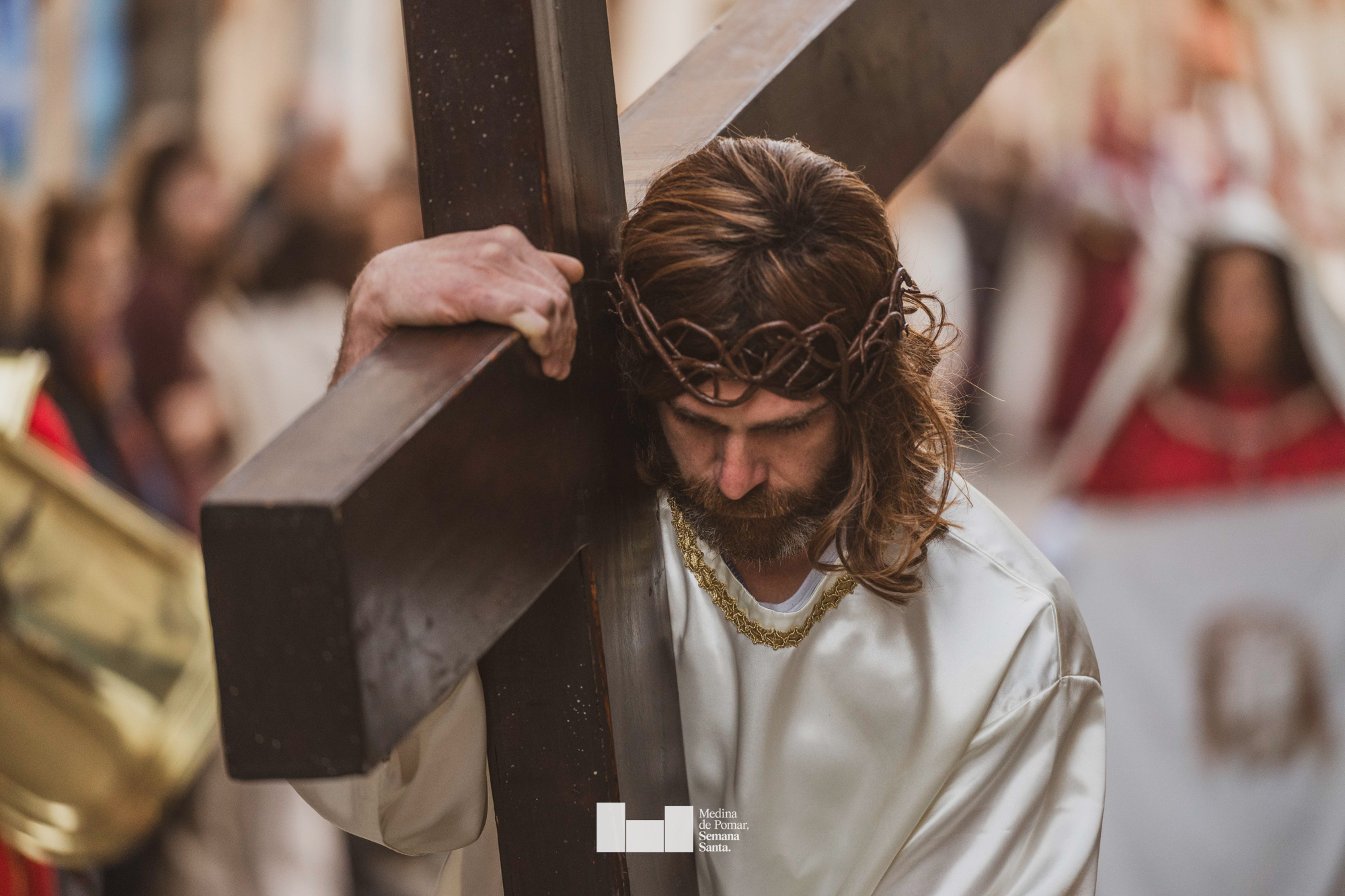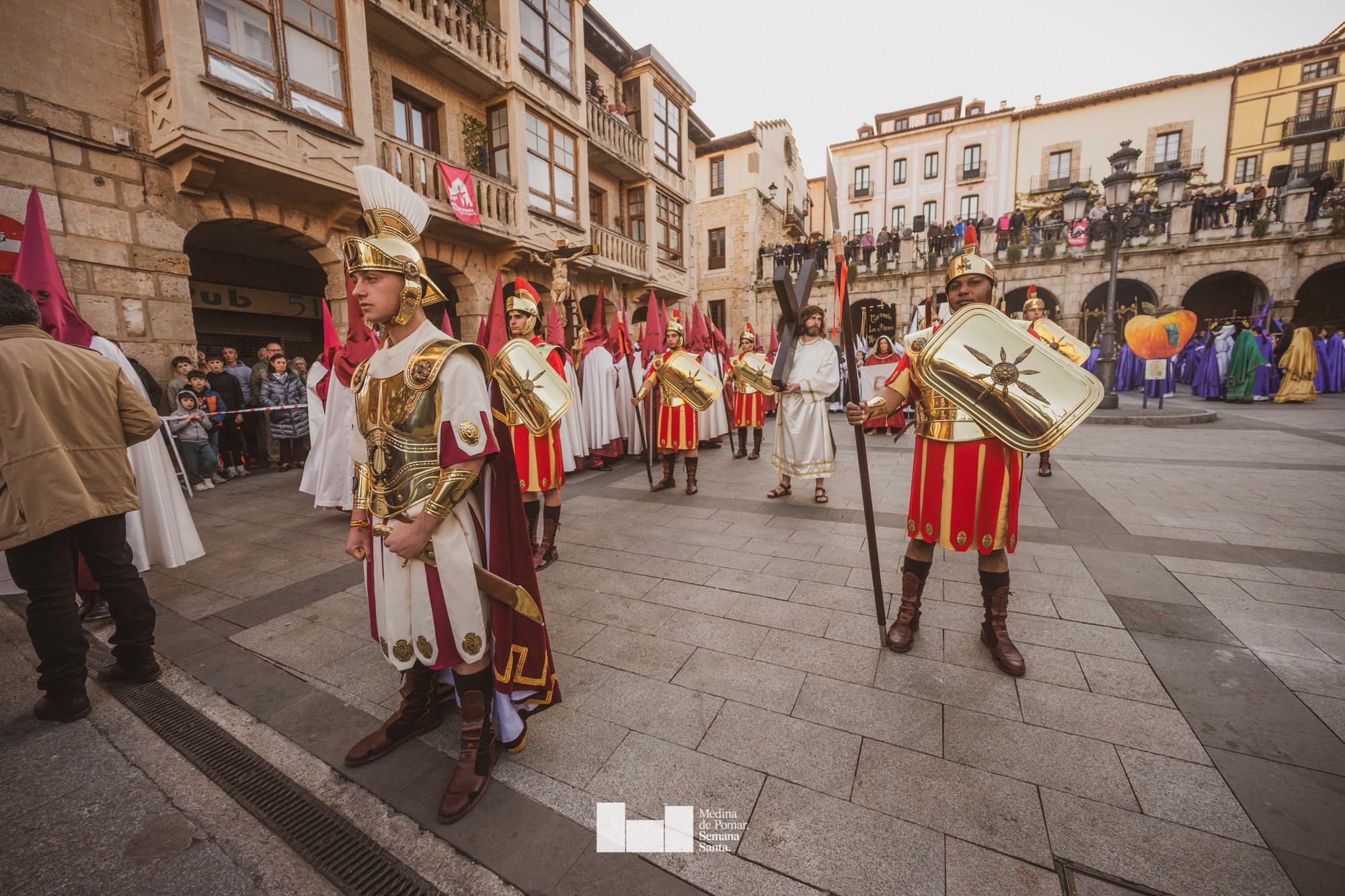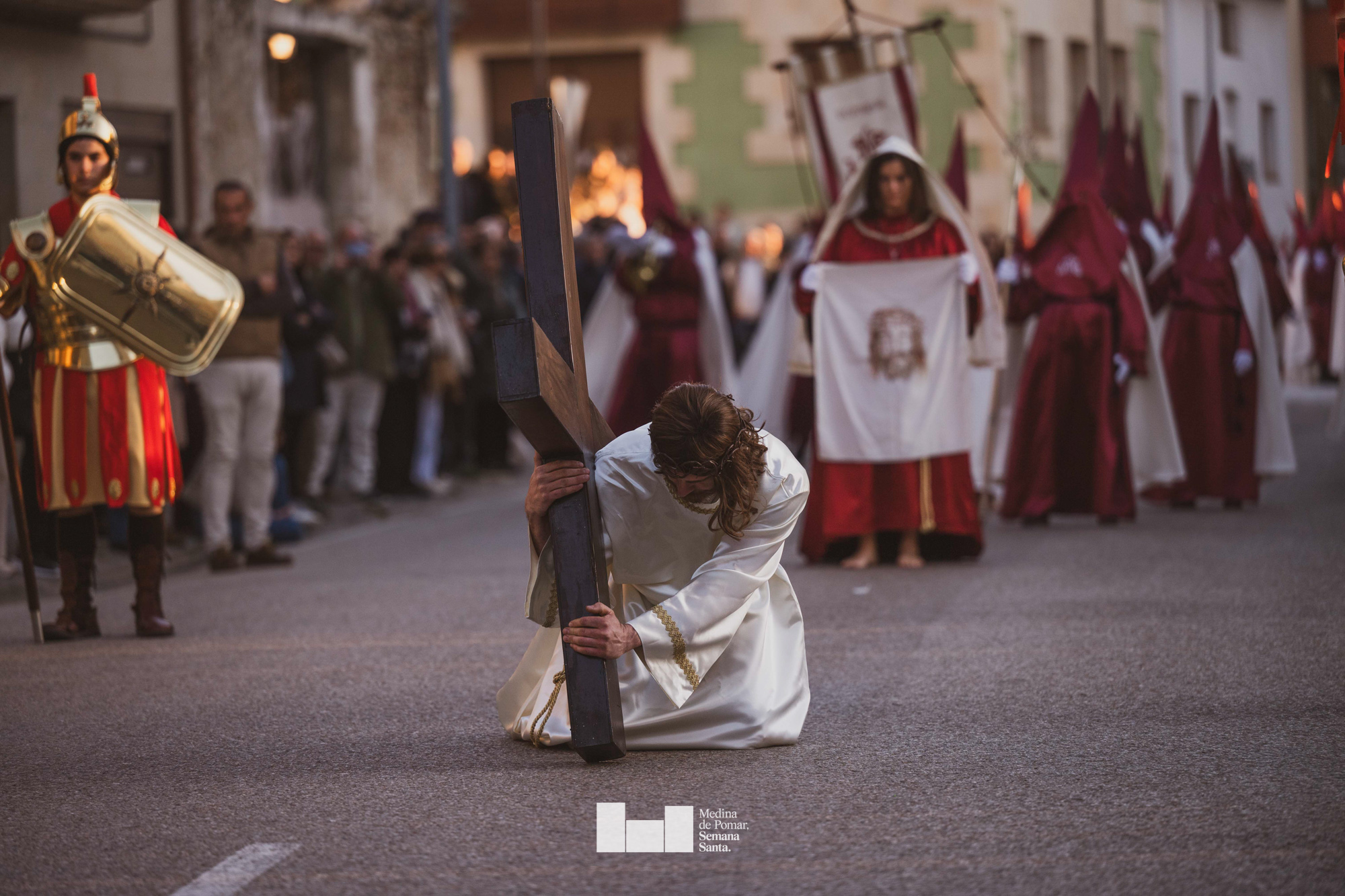 Una multitud de personas se agolpó a lo largo de todo el recorrido en la tarde del Viernes Santo para presenciar el paso de las ocho cofradías con sus pasos así como el Nazareno escoltado por los romanos o la aparición de el nuevo personaje que la procesión ha introducido este año: Simón de Cirene, el Cirineo.