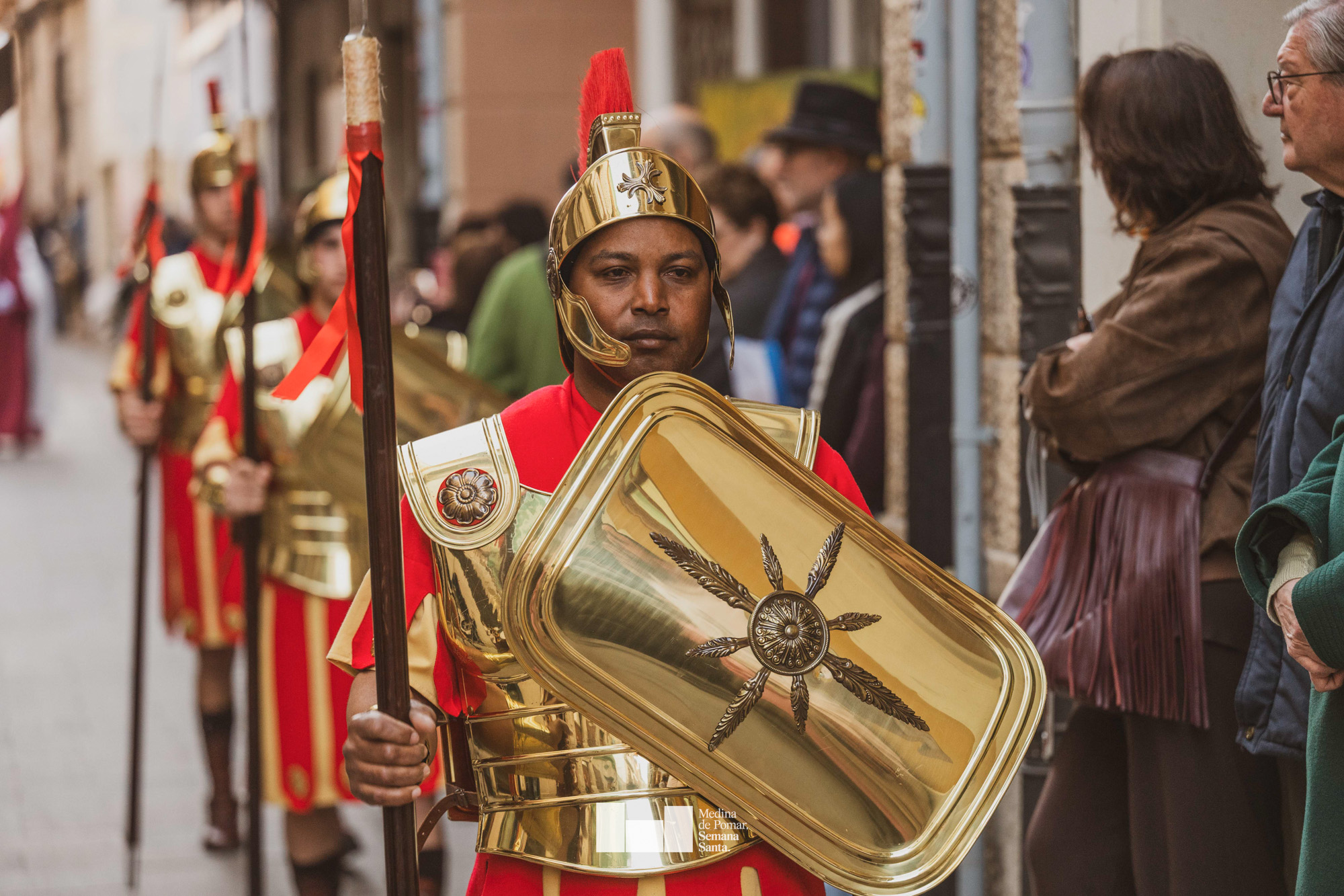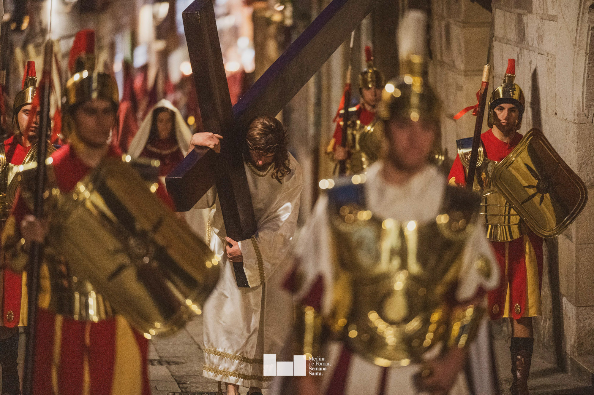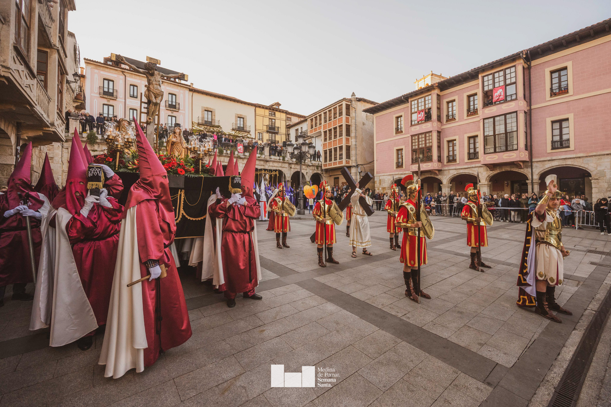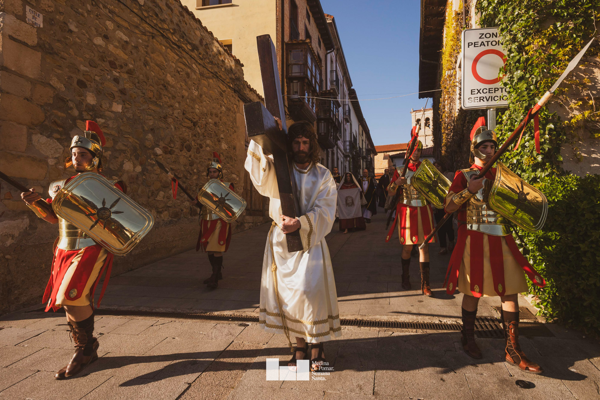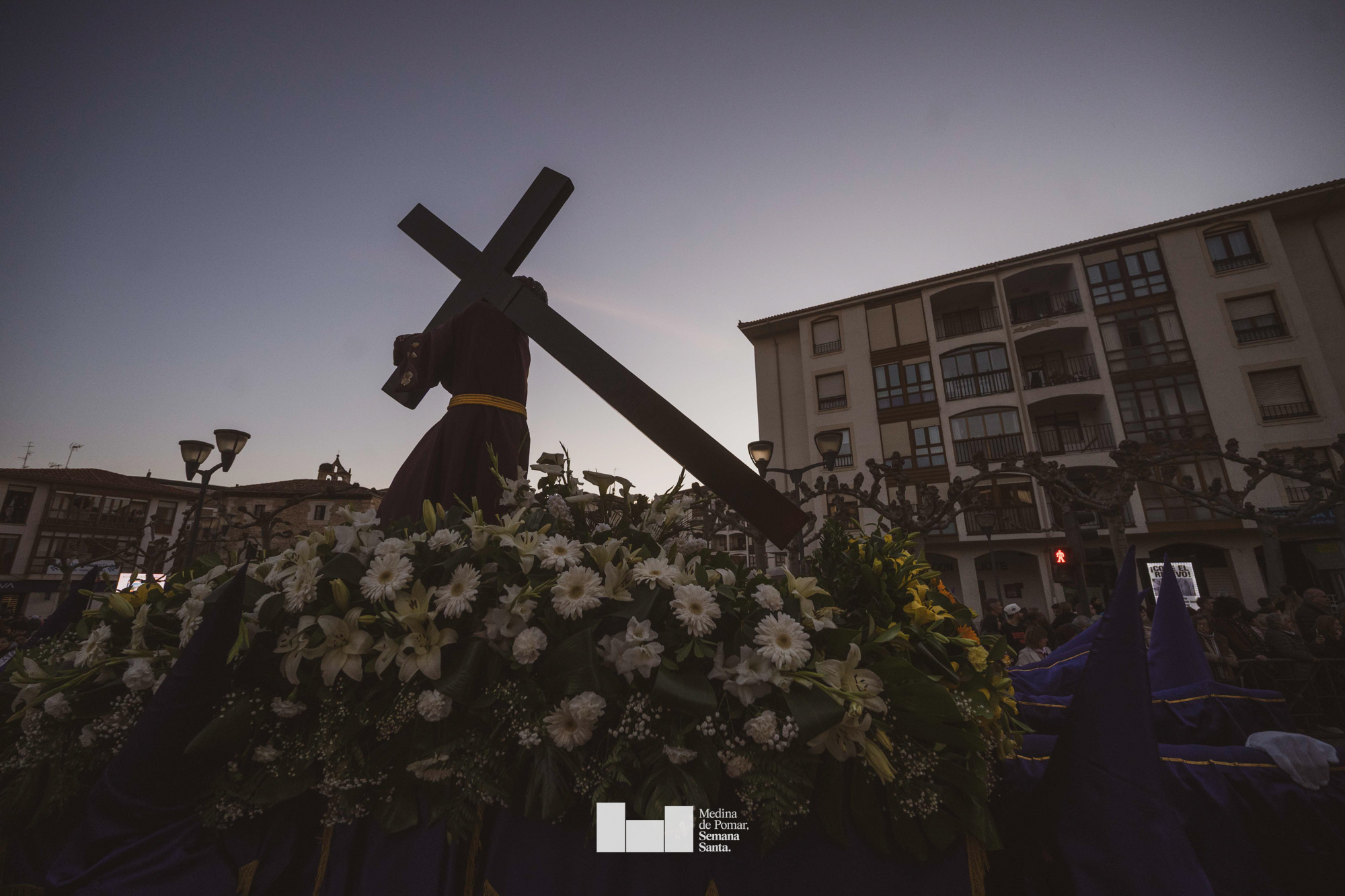 Una multitud de personas se agolpó a lo largo de todo el recorrido en la tarde del Viernes Santo para presenciar el paso de las ocho cofradías con sus pasos así como el Nazareno escoltado por los romanos o la aparición de el nuevo personaje que la procesión ha introducido este año: Simón de Cirene, el Cirineo.