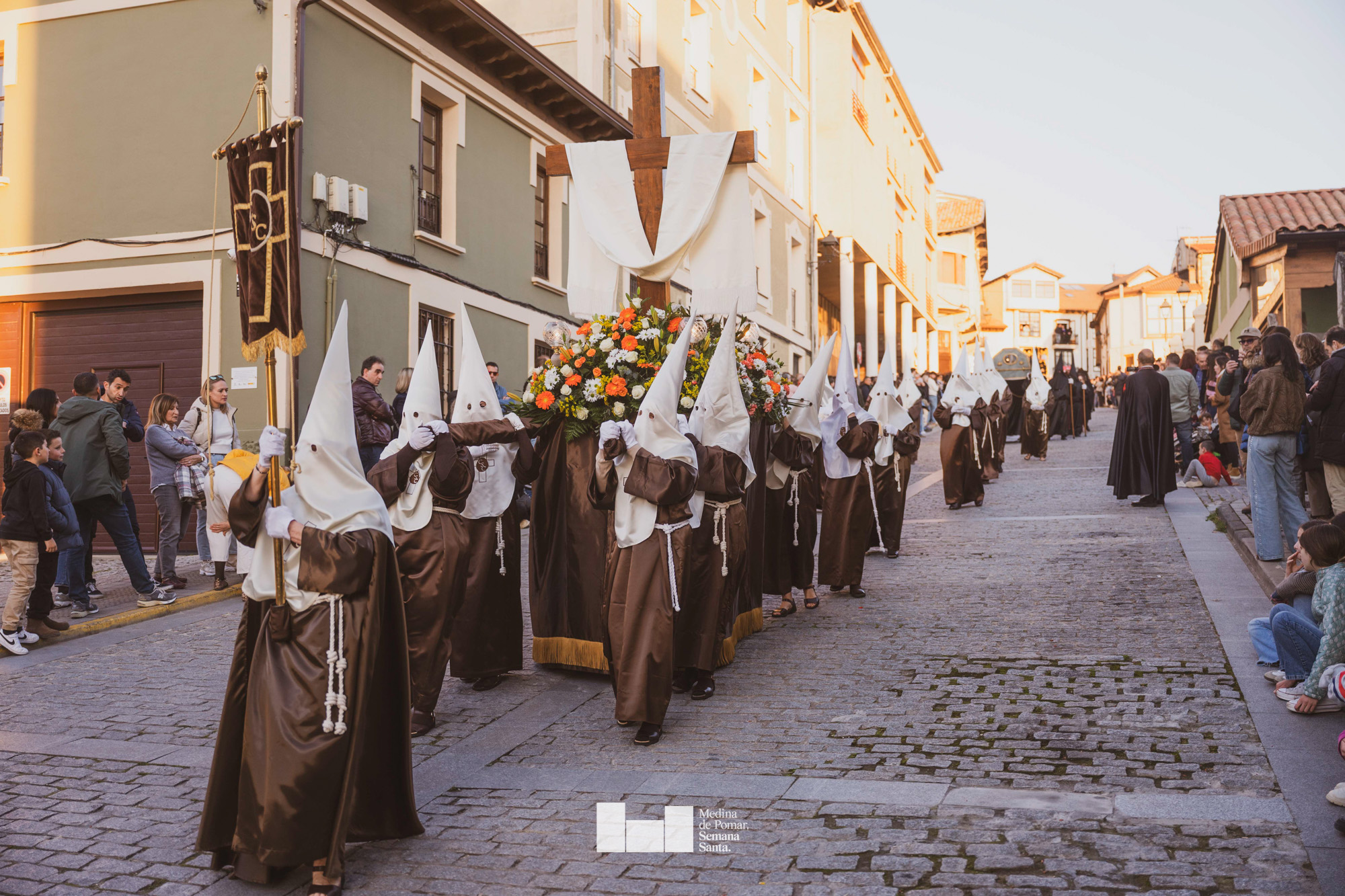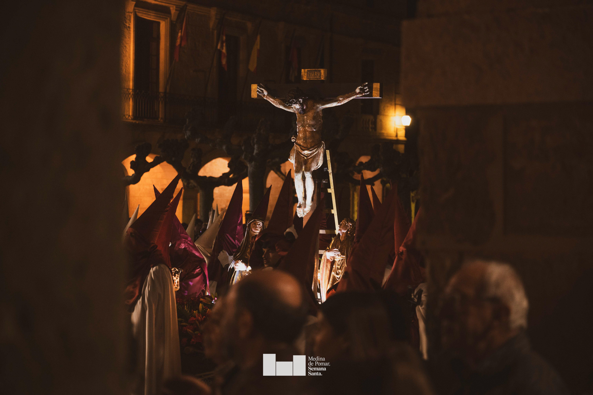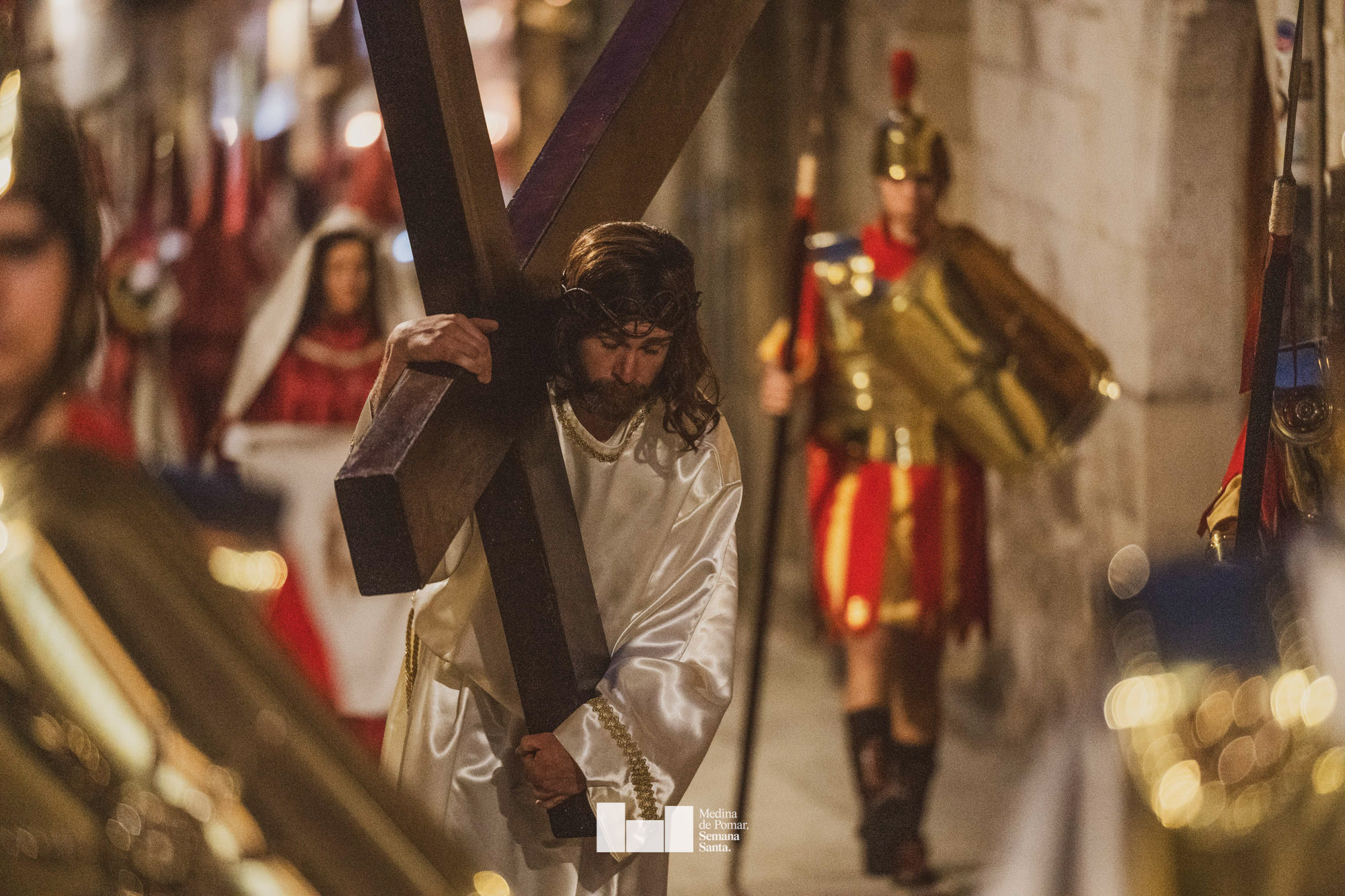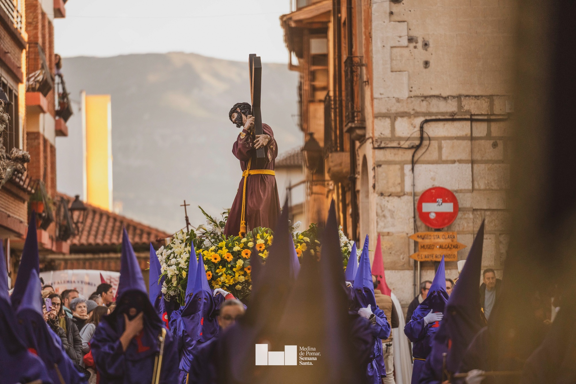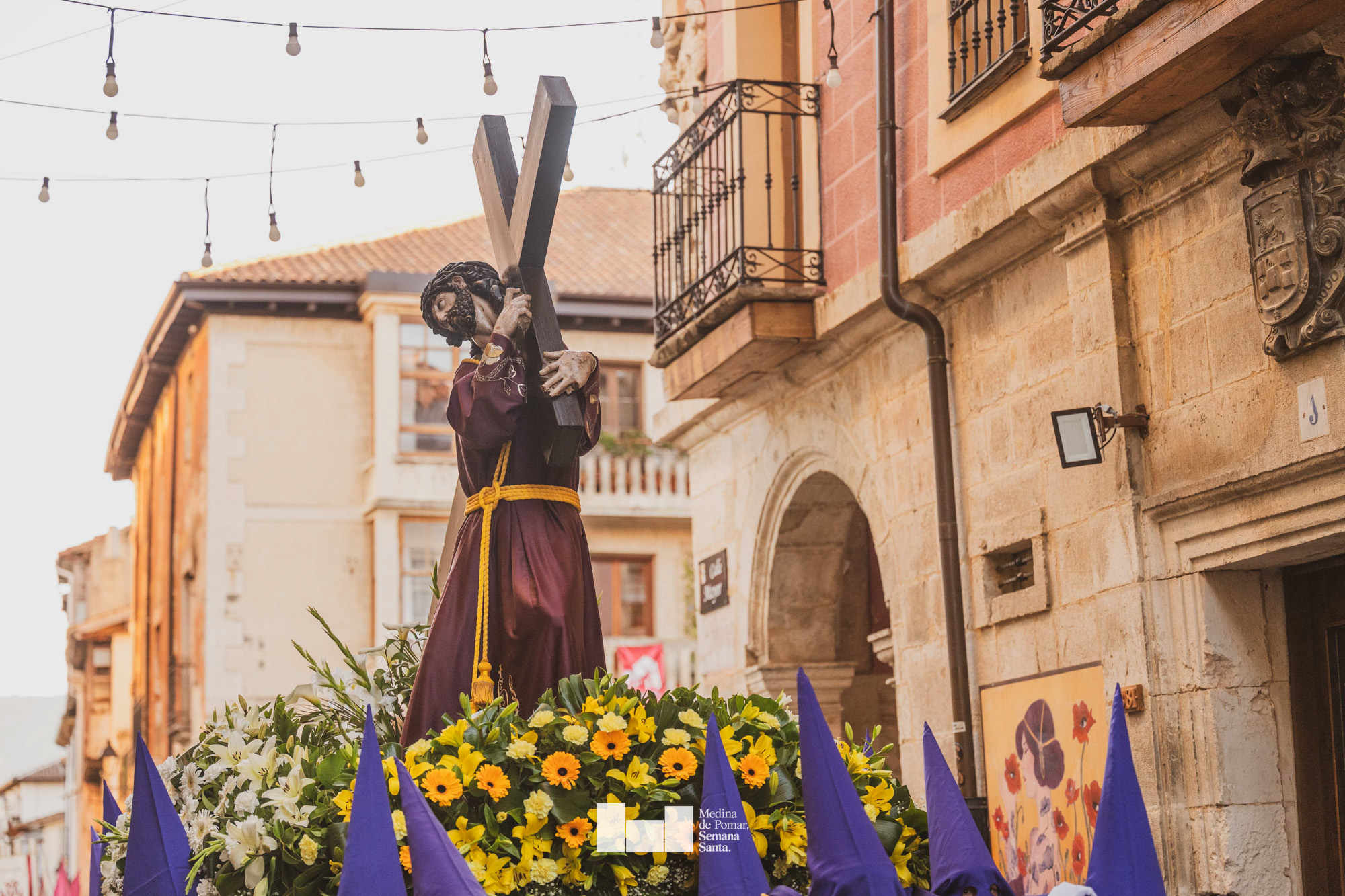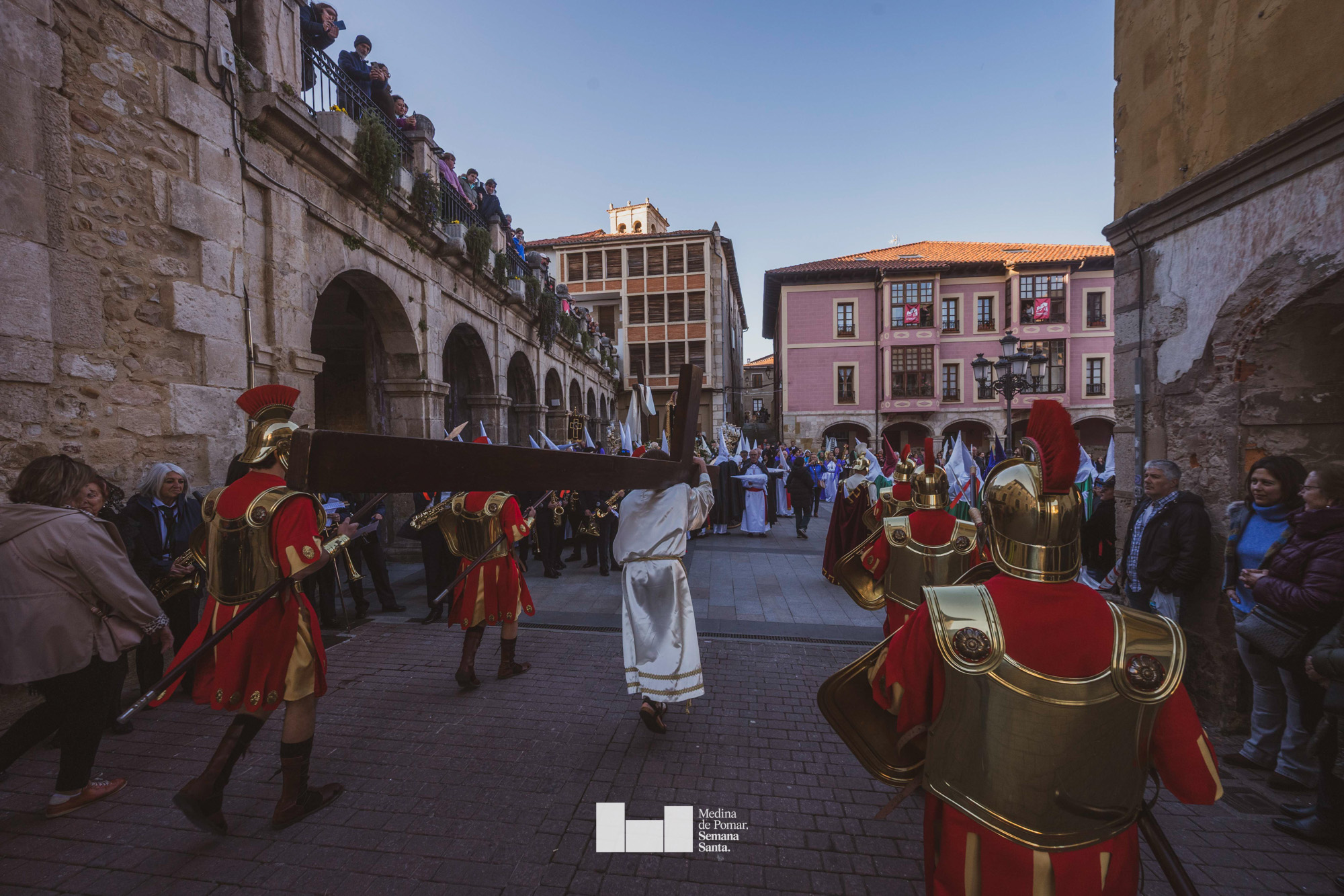Una multitud de personas se agolpó a lo largo de todo el recorrido en la tarde del Viernes Santo para presenciar el paso de las ocho cofradías con sus pasos así como el Nazareno escoltado por los romanos o la aparición de el nuevo personaje que la procesión ha introducido este año: Simón de Cirene, el Cirineo.