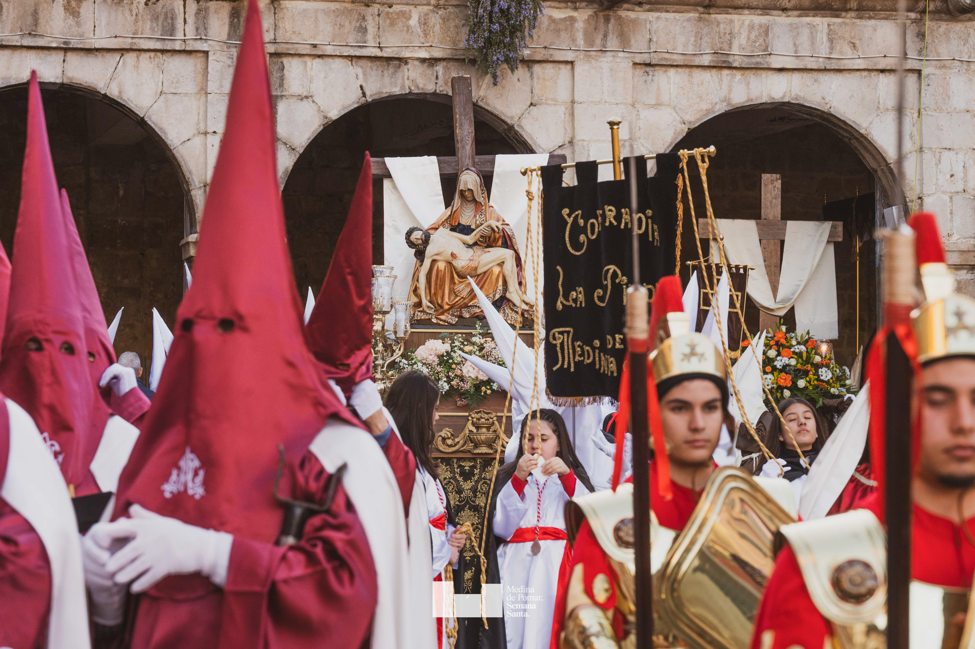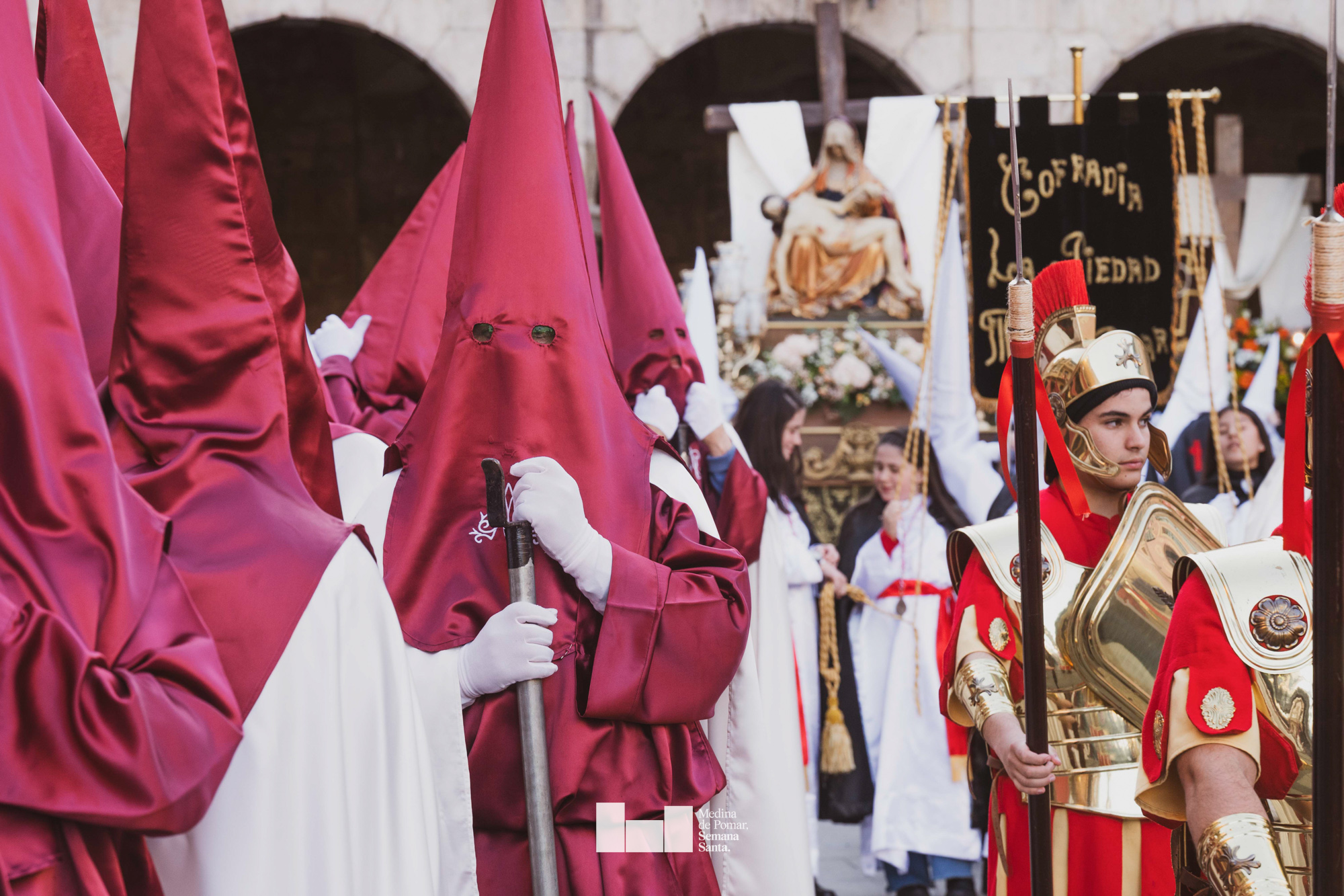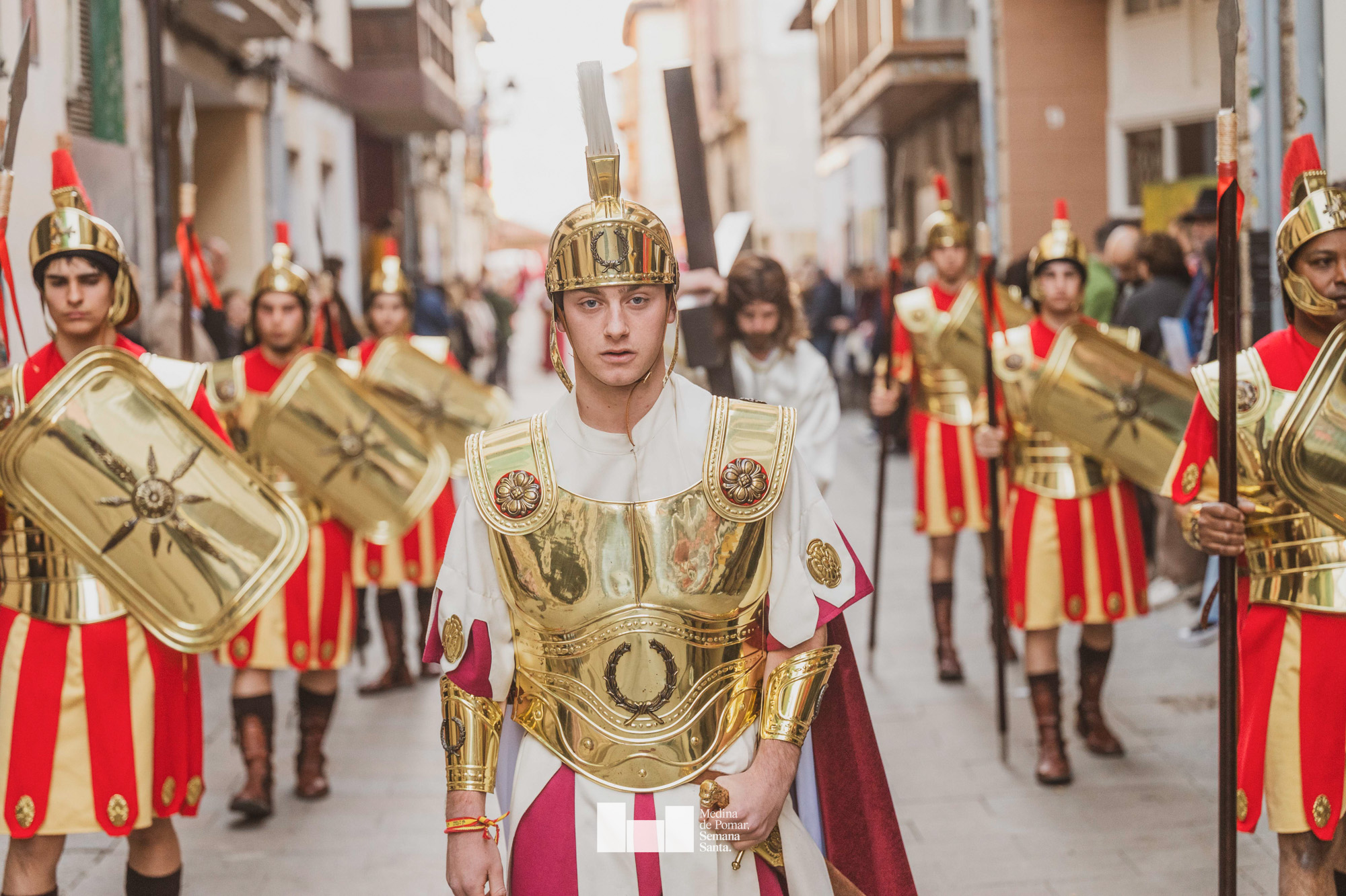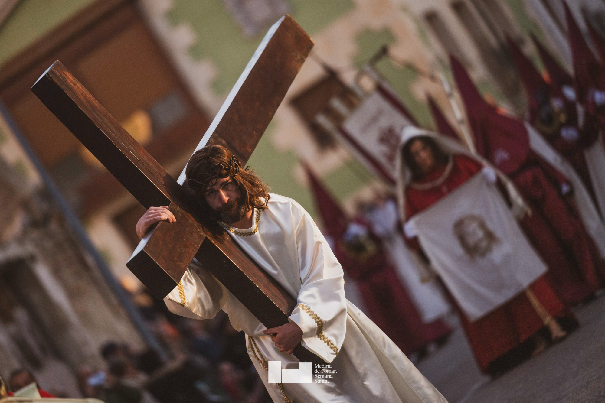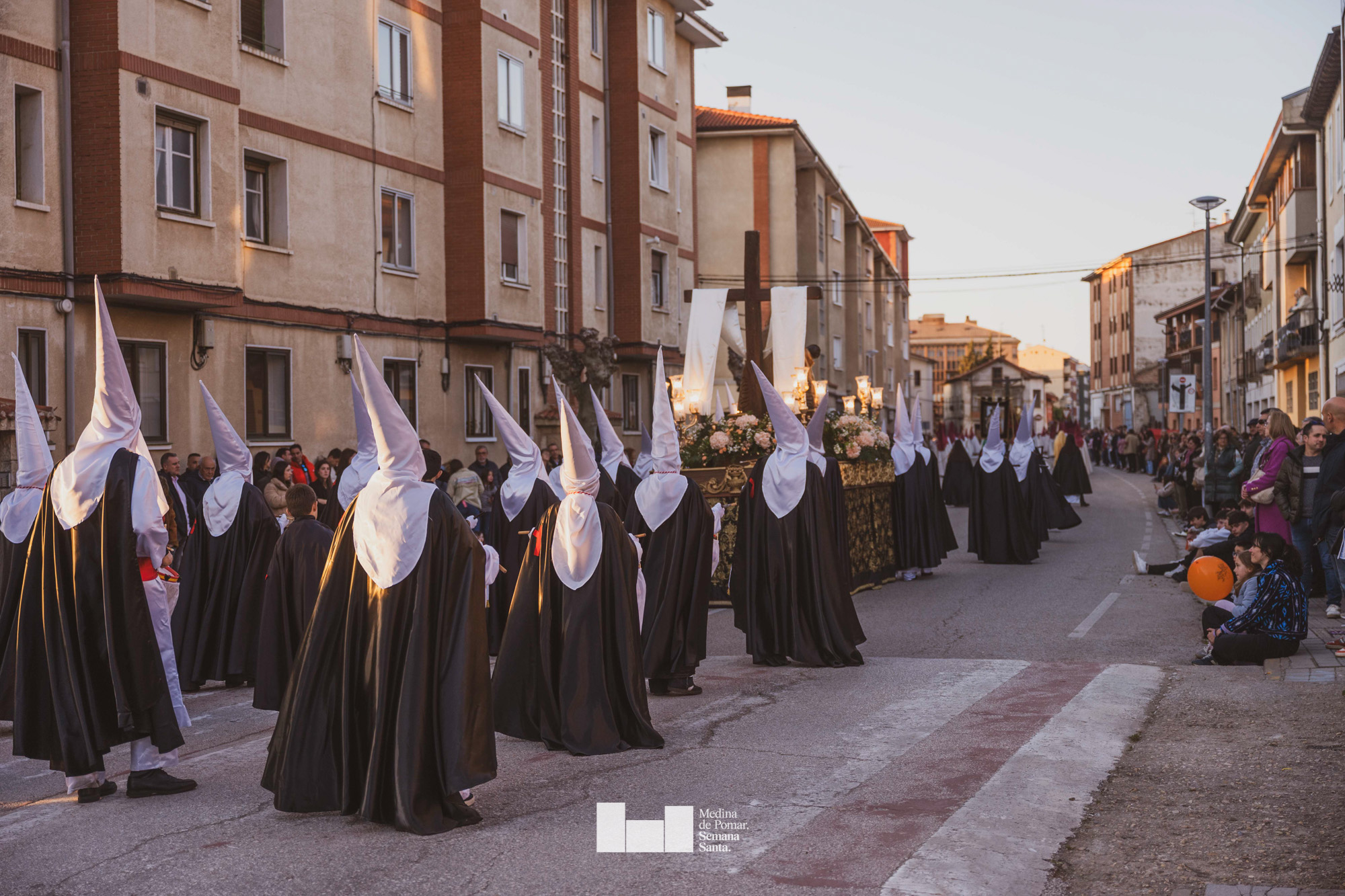 Una multitud de personas se agolpó a lo largo de todo el recorrido en la tarde del Viernes Santo para presenciar el paso de las ocho cofradías con sus pasos así como el Nazareno escoltado por los romanos o la aparición de el nuevo personaje que la procesión ha introducido este año: Simón de Cirene, el Cirineo.