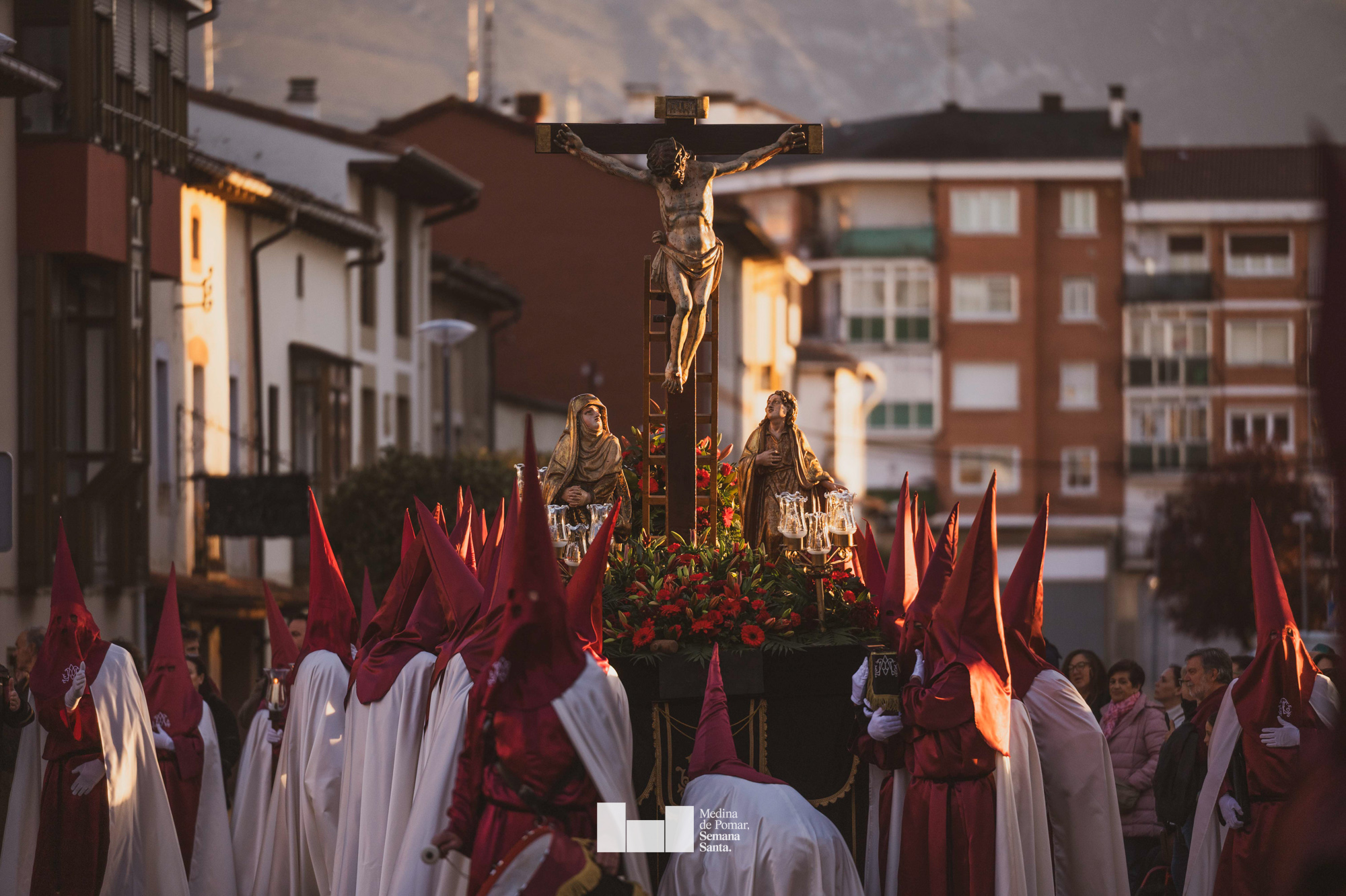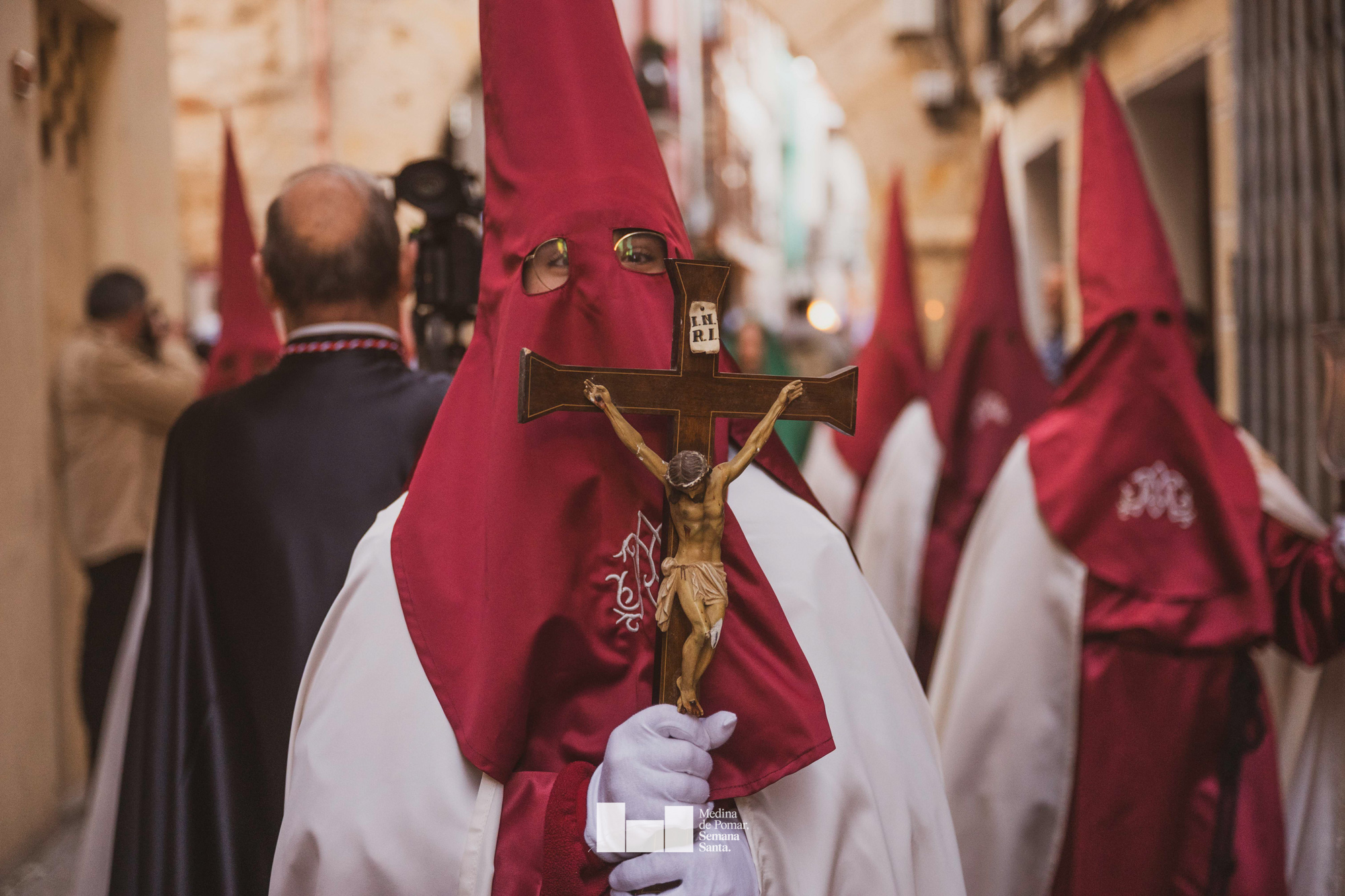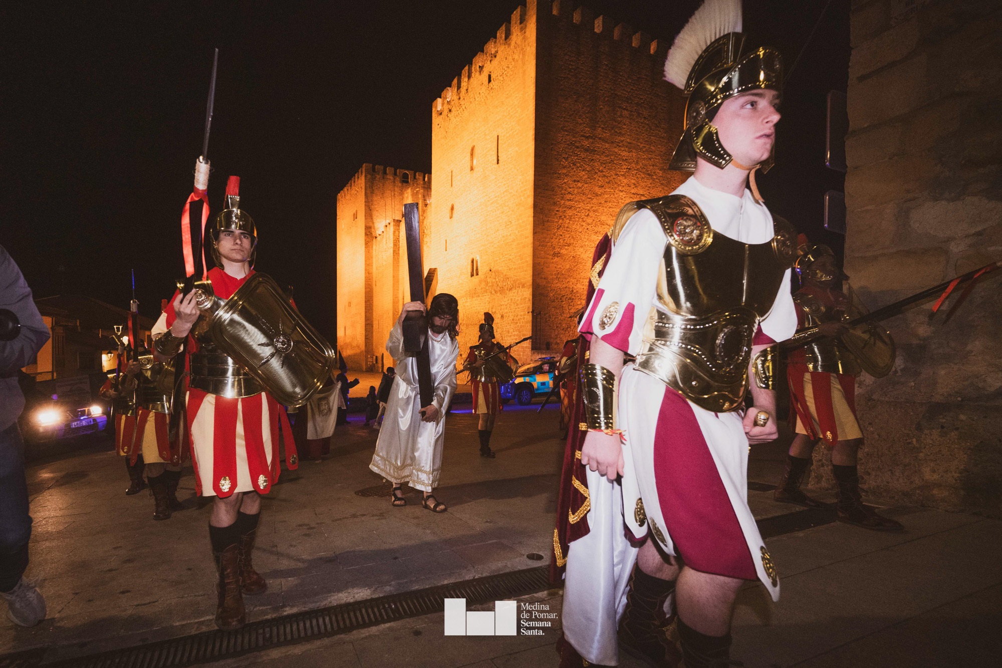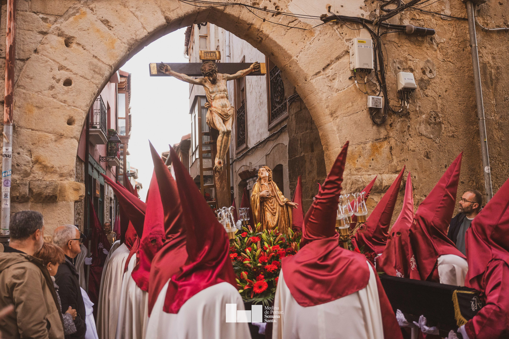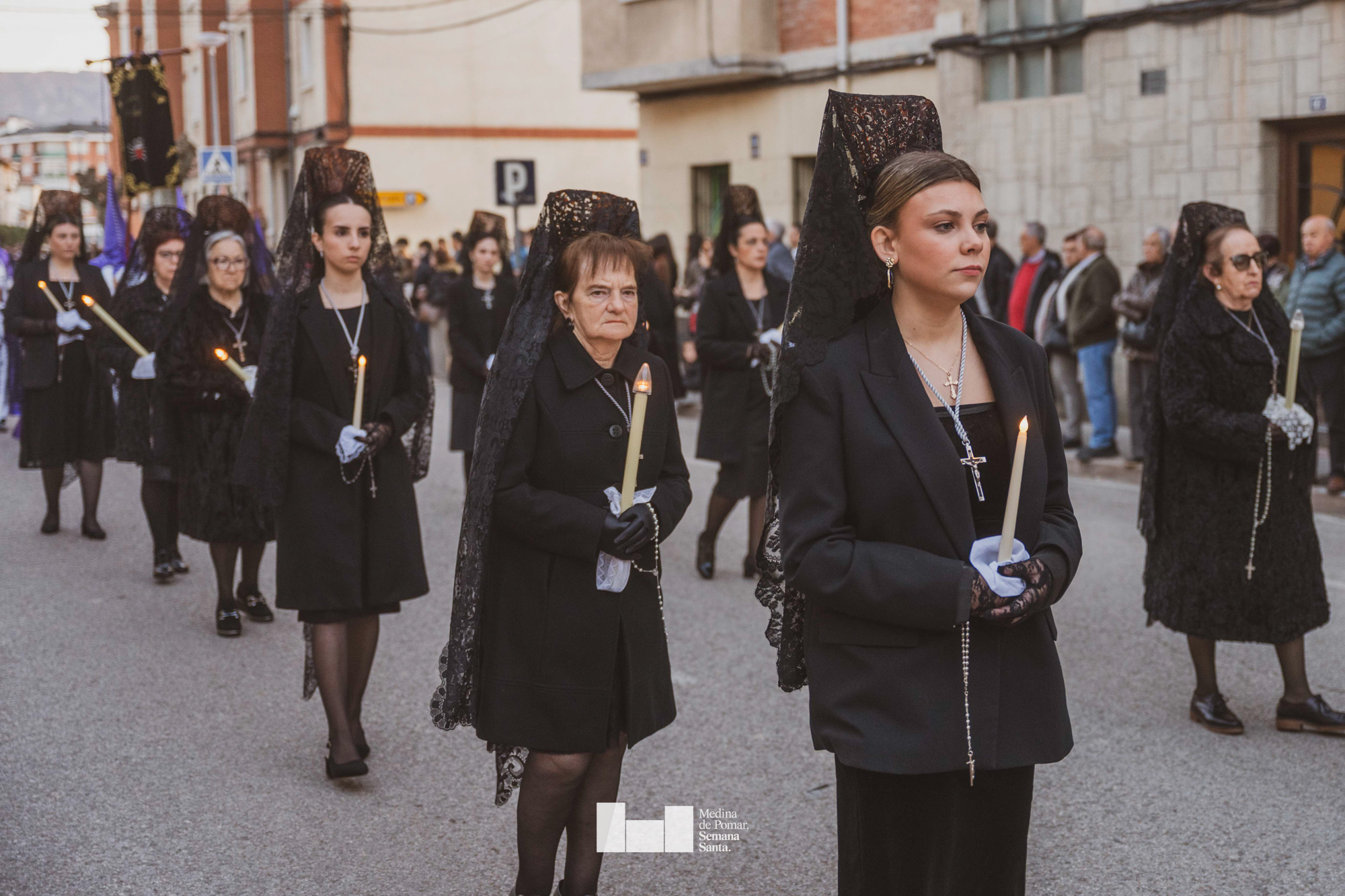 Una multitud de personas se agolpó a lo largo de todo el recorrido en la tarde del Viernes Santo para presenciar el paso de las ocho cofradías con sus pasos así como el Nazareno escoltado por los romanos o la aparición de el nuevo personaje que la procesión ha introducido este año: Simón de Cirene, el Cirineo.