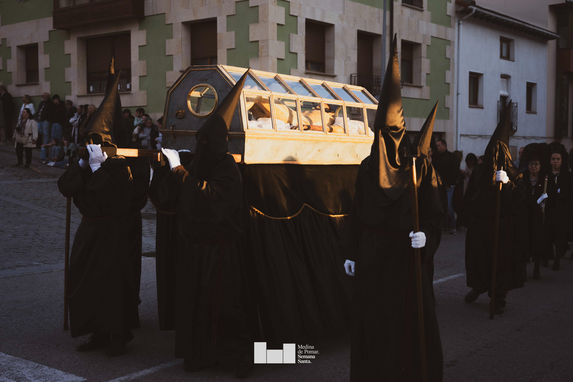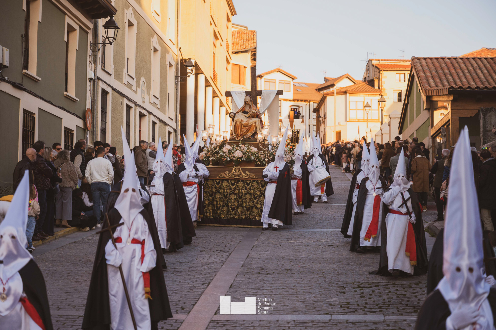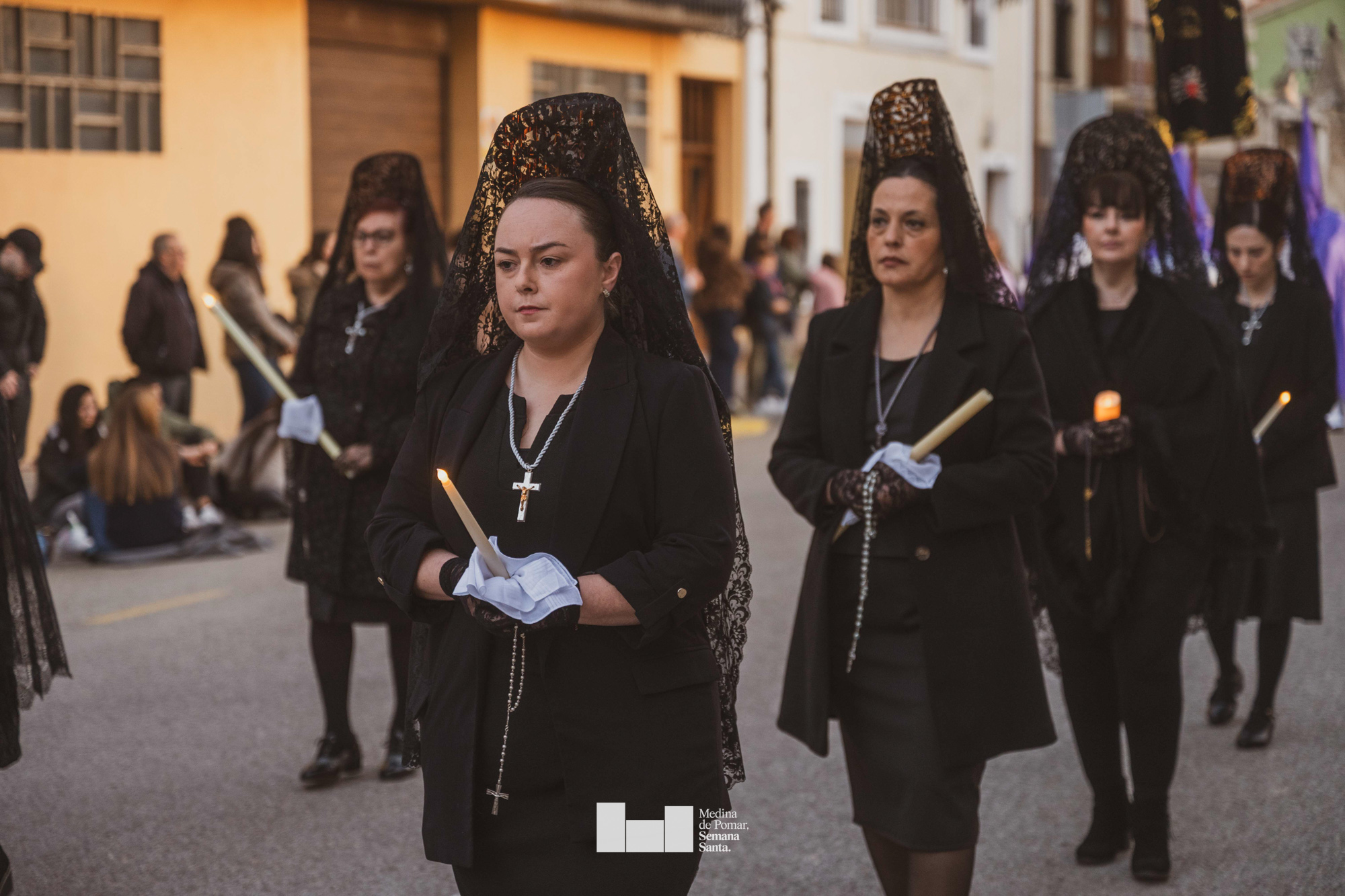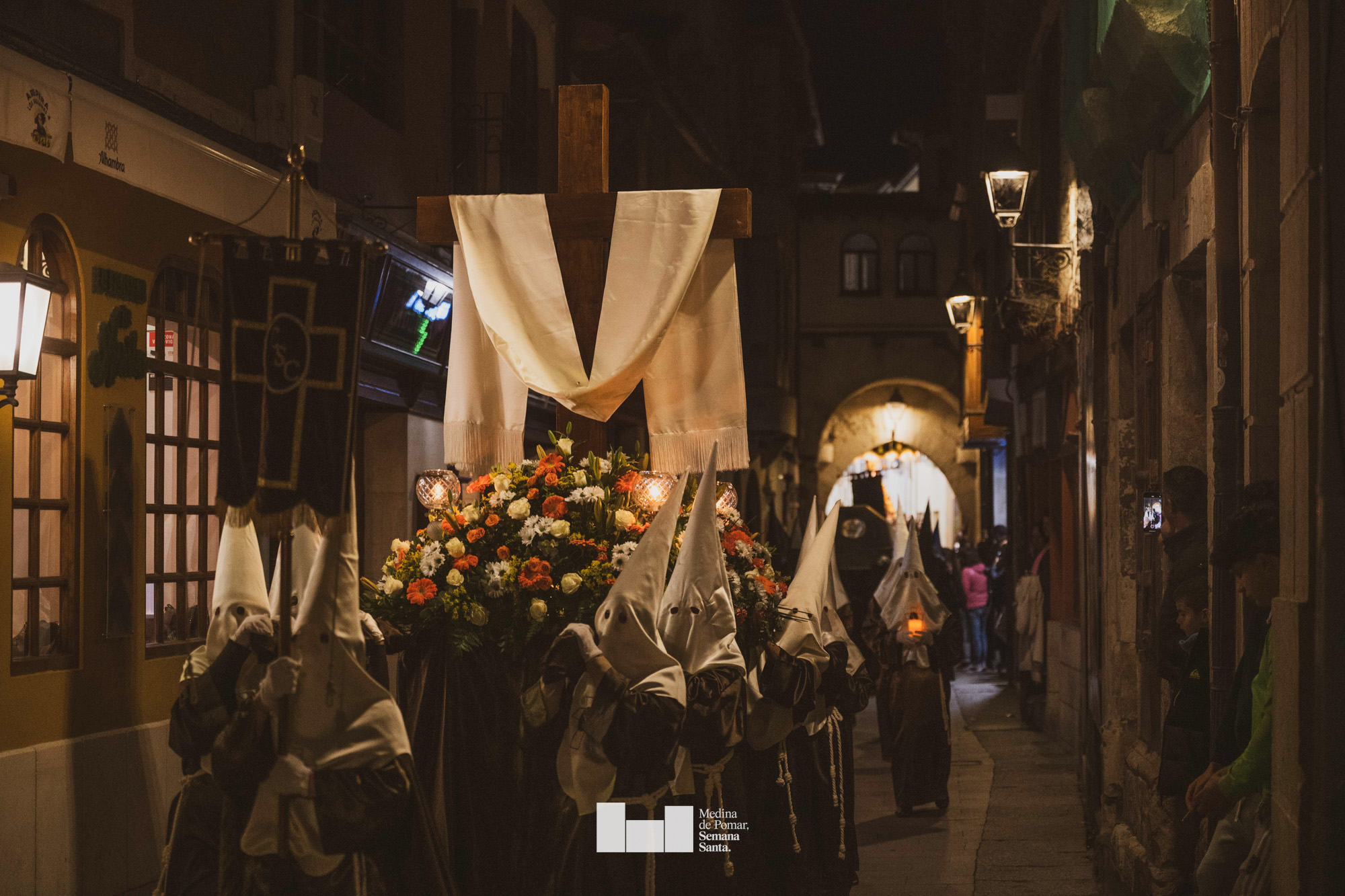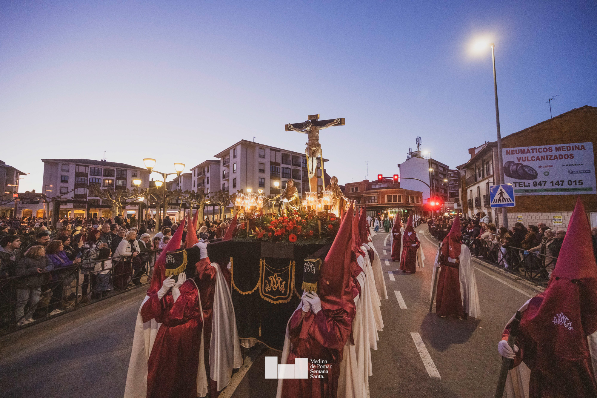Una multitud de personas se agolpó a lo largo de todo el recorrido en la tarde del Viernes Santo para presenciar el paso de las ocho cofradías con sus pasos así como el Nazareno escoltado por los romanos o la aparición de el nuevo personaje que la procesión ha introducido este año: Simón de Cirene, el Cirineo.