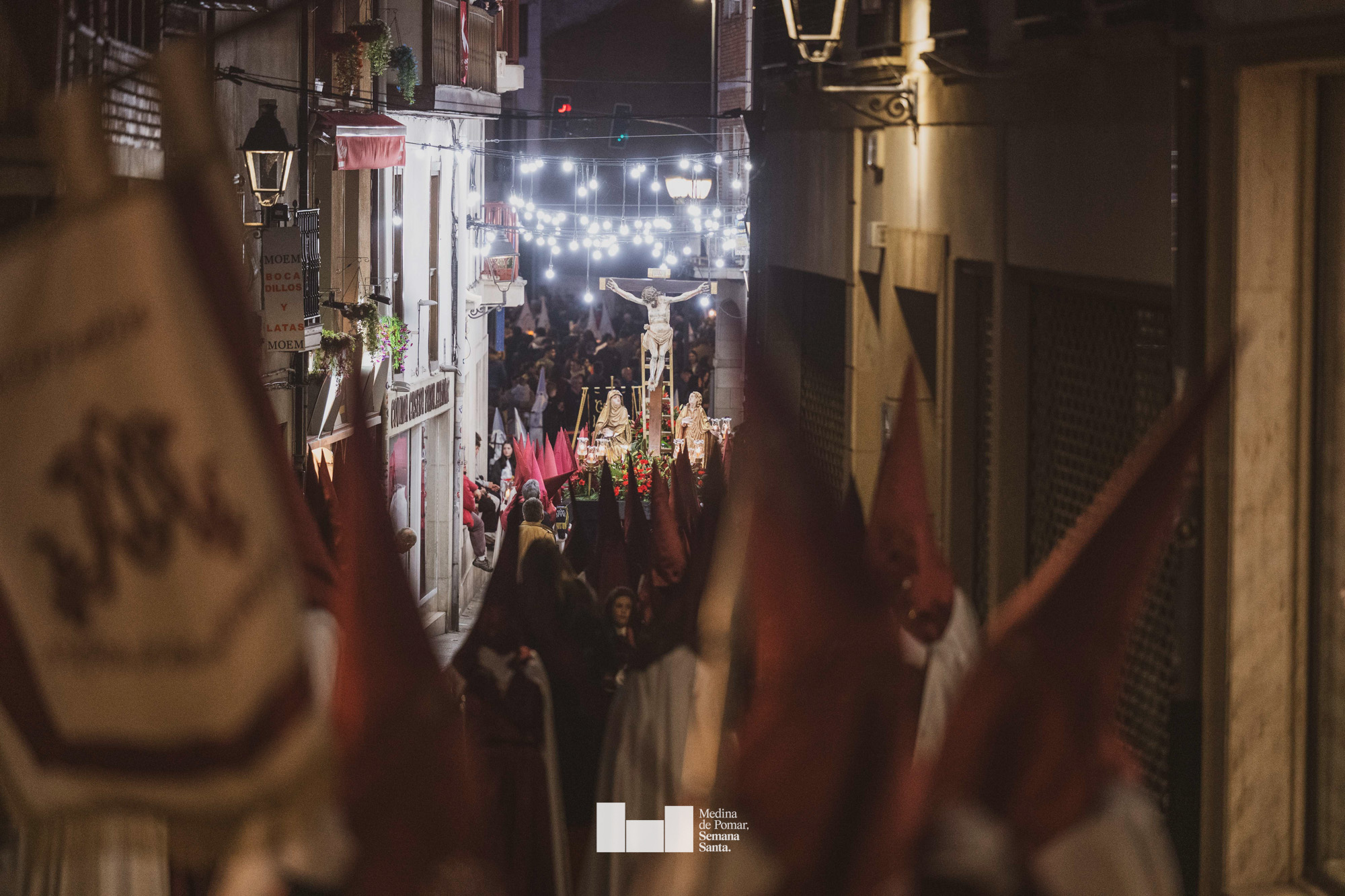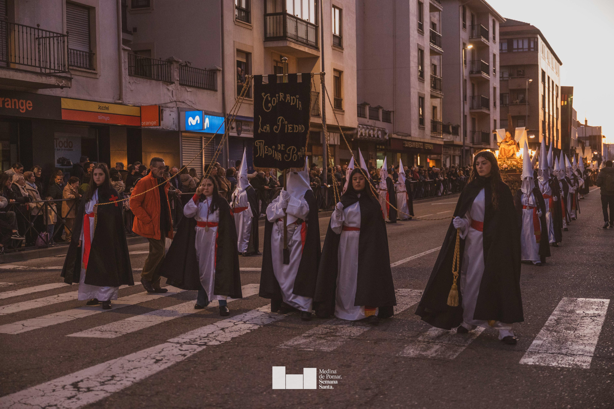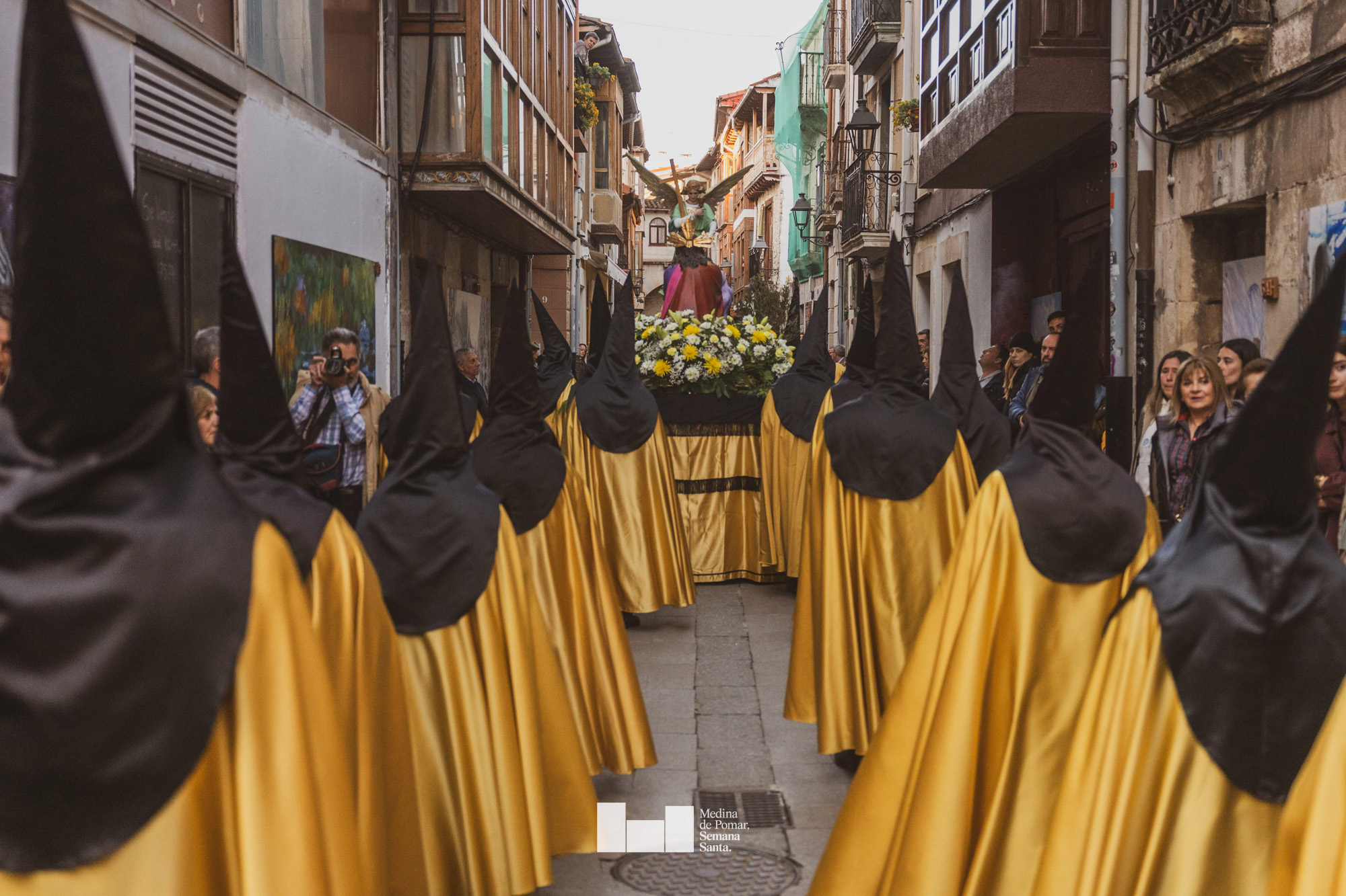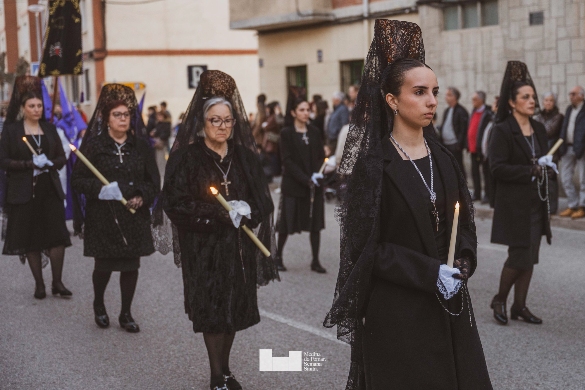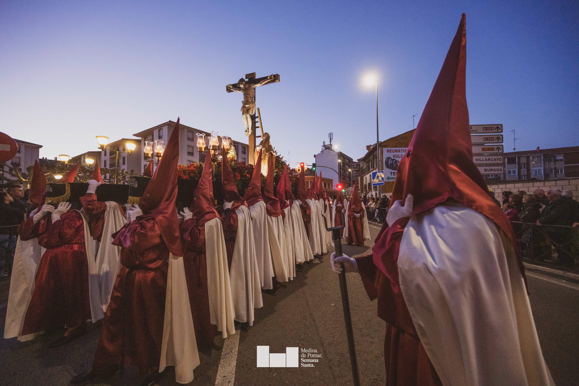 Una multitud de personas se agolpó a lo largo de todo el recorrido en la tarde del Viernes Santo para presenciar el paso de las ocho cofradías con sus pasos así como el Nazareno escoltado por los romanos o la aparición de el nuevo personaje que la procesión ha introducido este año: Simón de Cirene, el Cirineo.