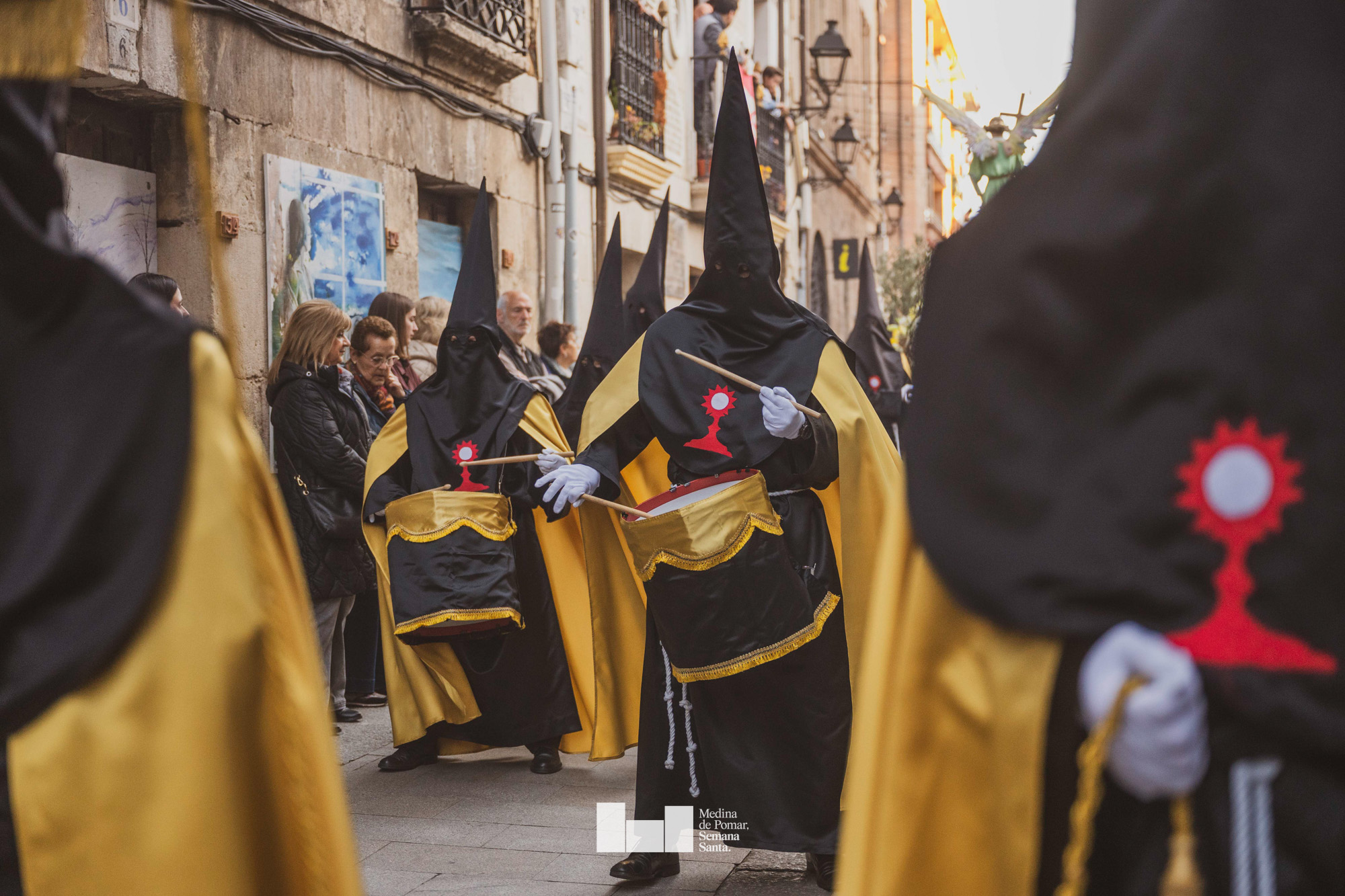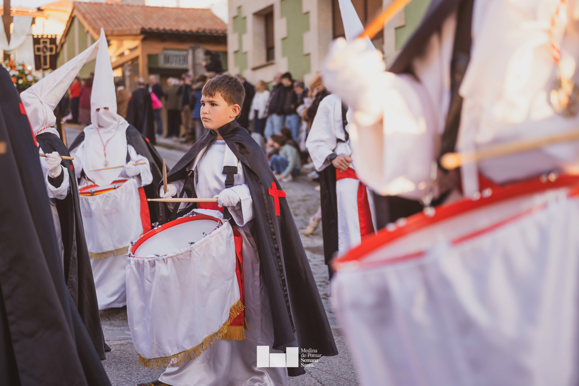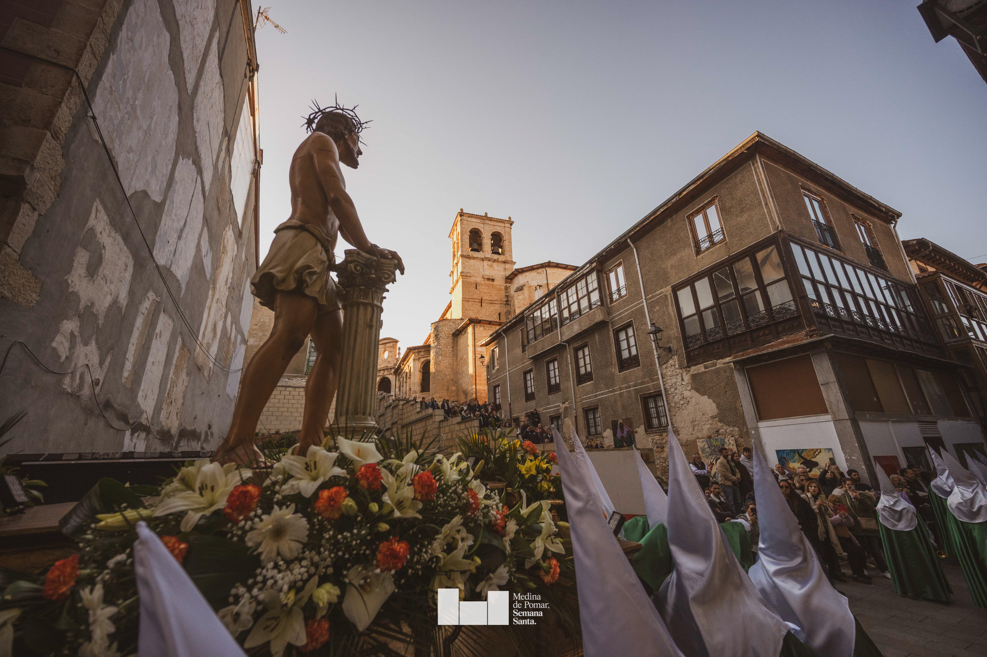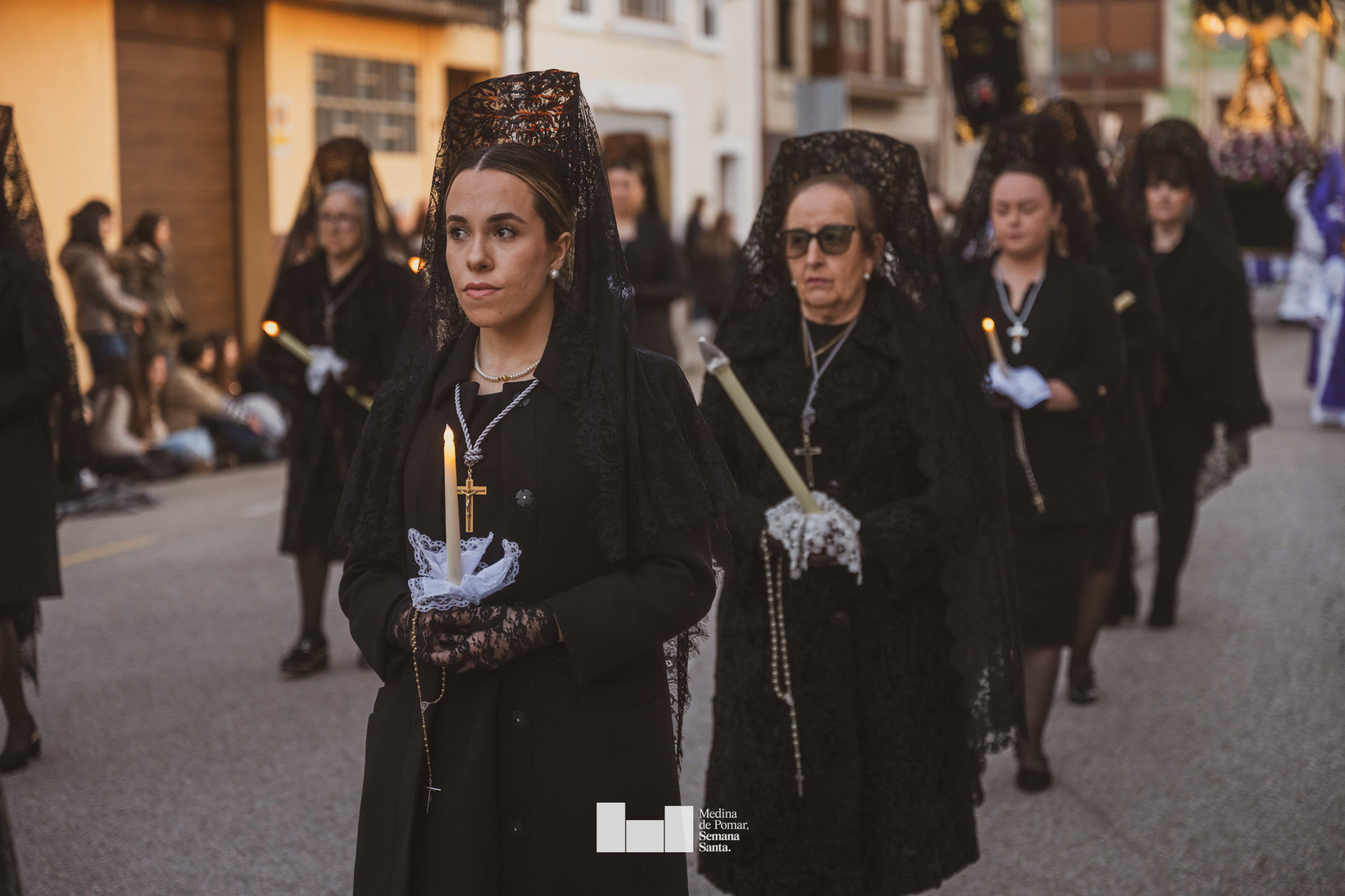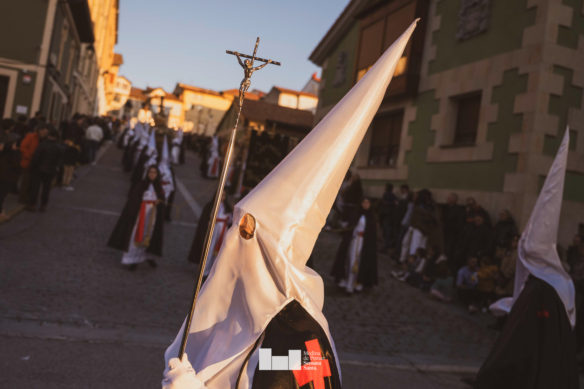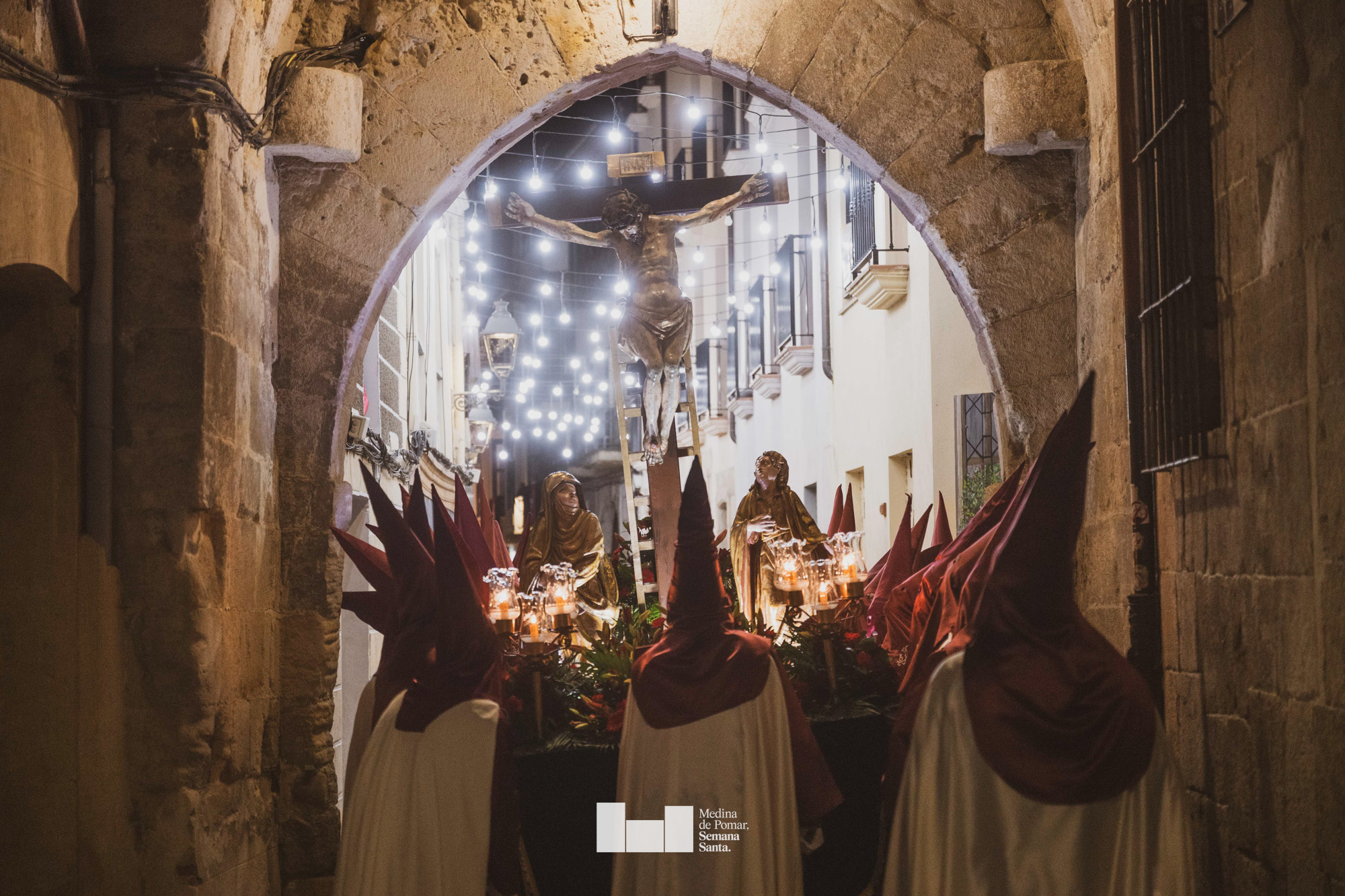 Una multitud de personas se agolpó a lo largo de todo el recorrido en la tarde del Viernes Santo para presenciar el paso de las ocho cofradías con sus pasos así como el Nazareno escoltado por los romanos o la aparición de el nuevo personaje que la procesión ha introducido este año: Simón de Cirene, el Cirineo.