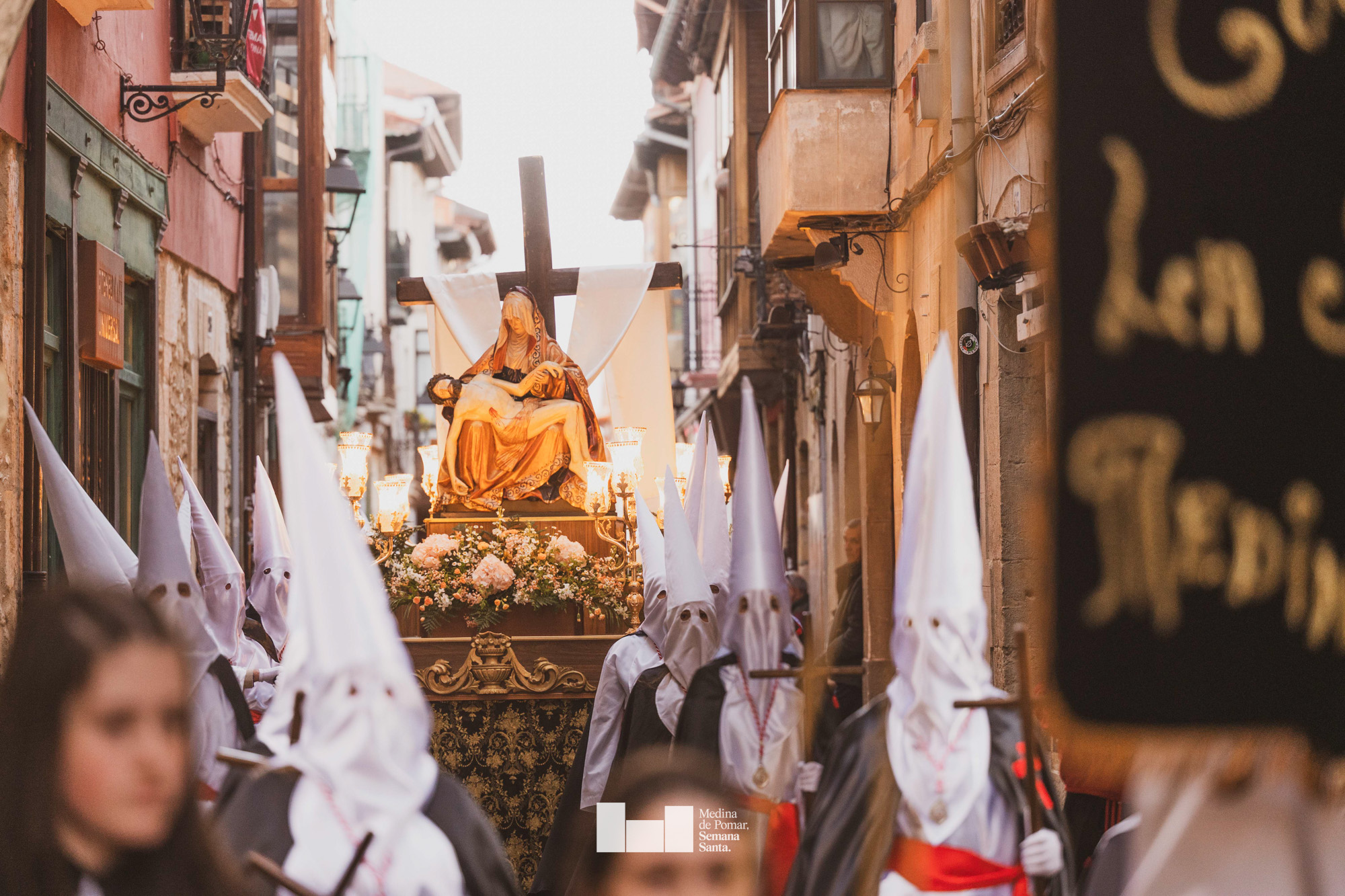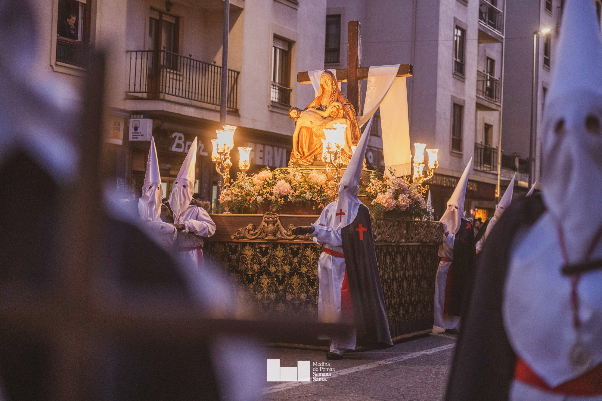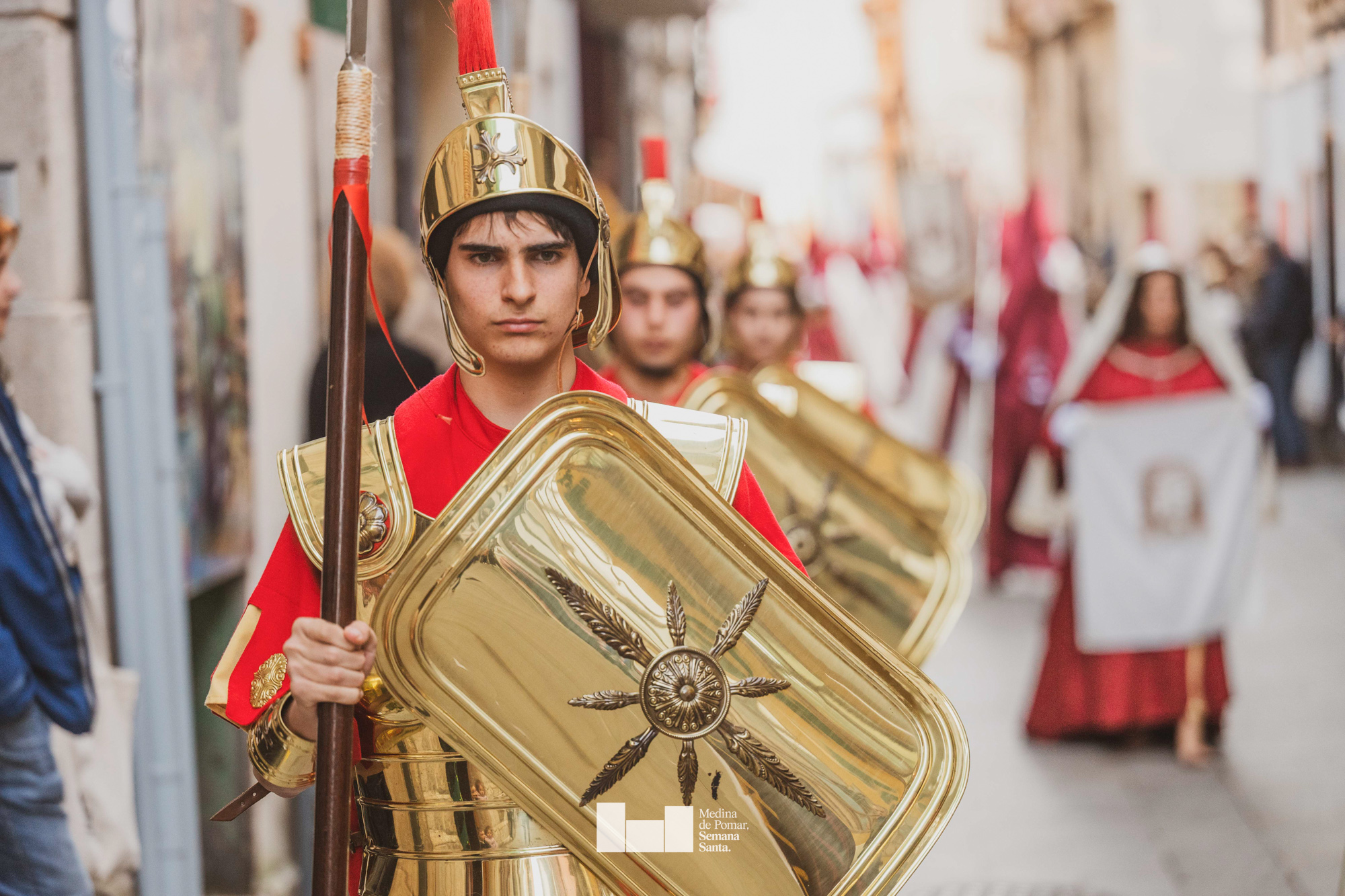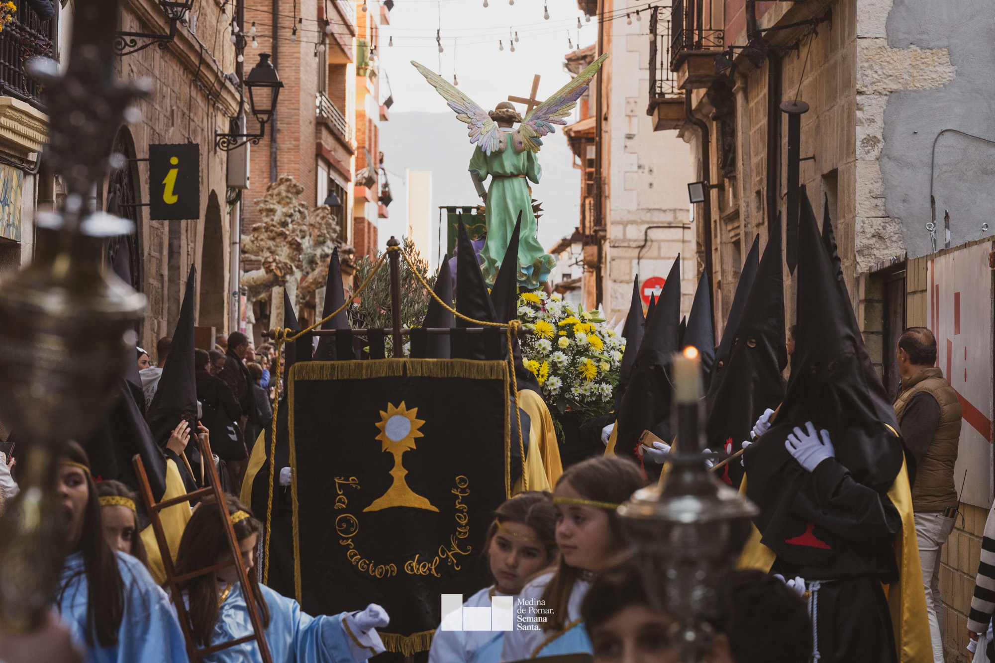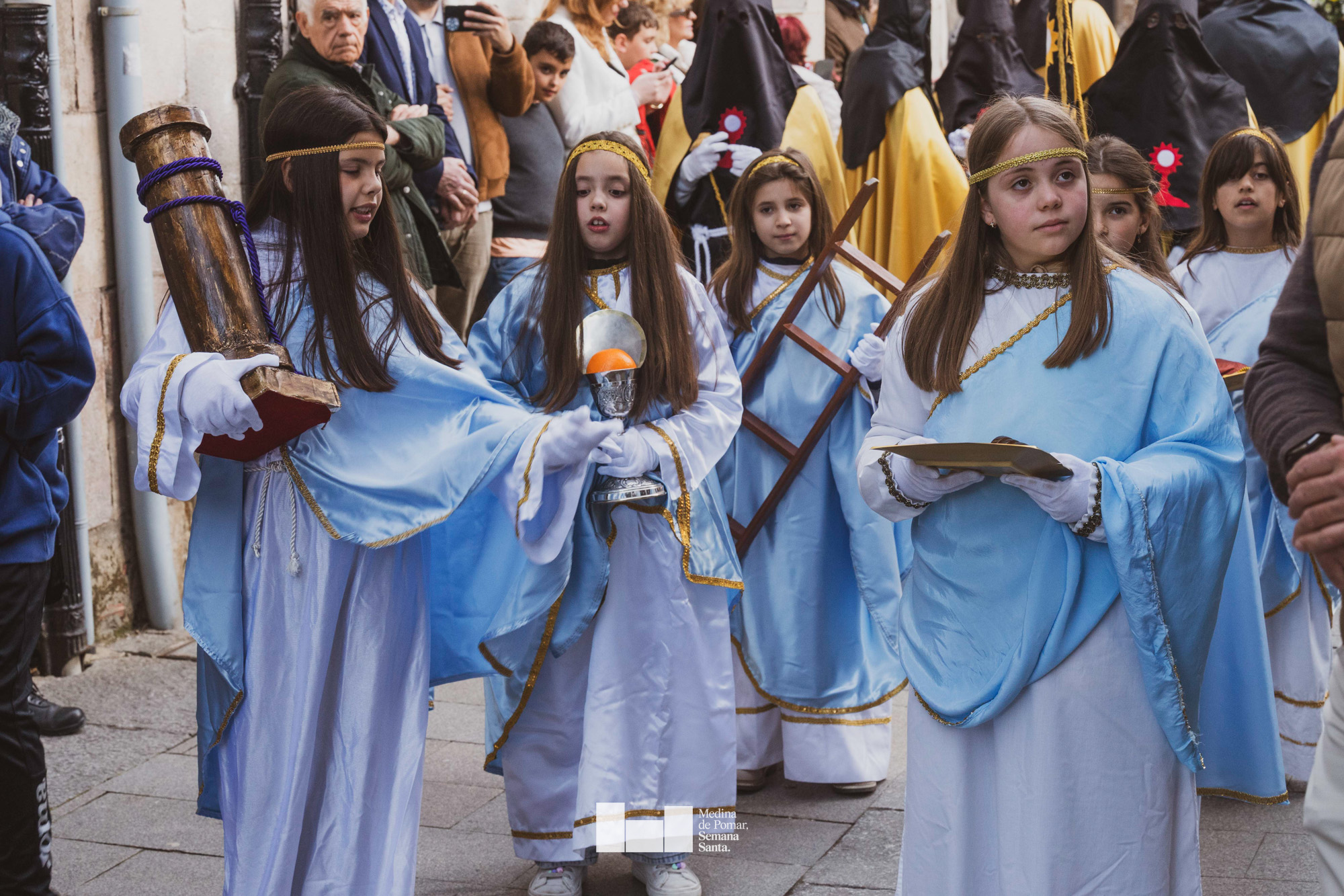Una multitud de personas se agolpó a lo largo de todo el recorrido en la tarde del Viernes Santo para presenciar el paso de las ocho cofradías con sus pasos así como el Nazareno escoltado por los romanos o la aparición de el nuevo personaje que la procesión ha introducido este año: Simón de Cirene, el Cirineo.