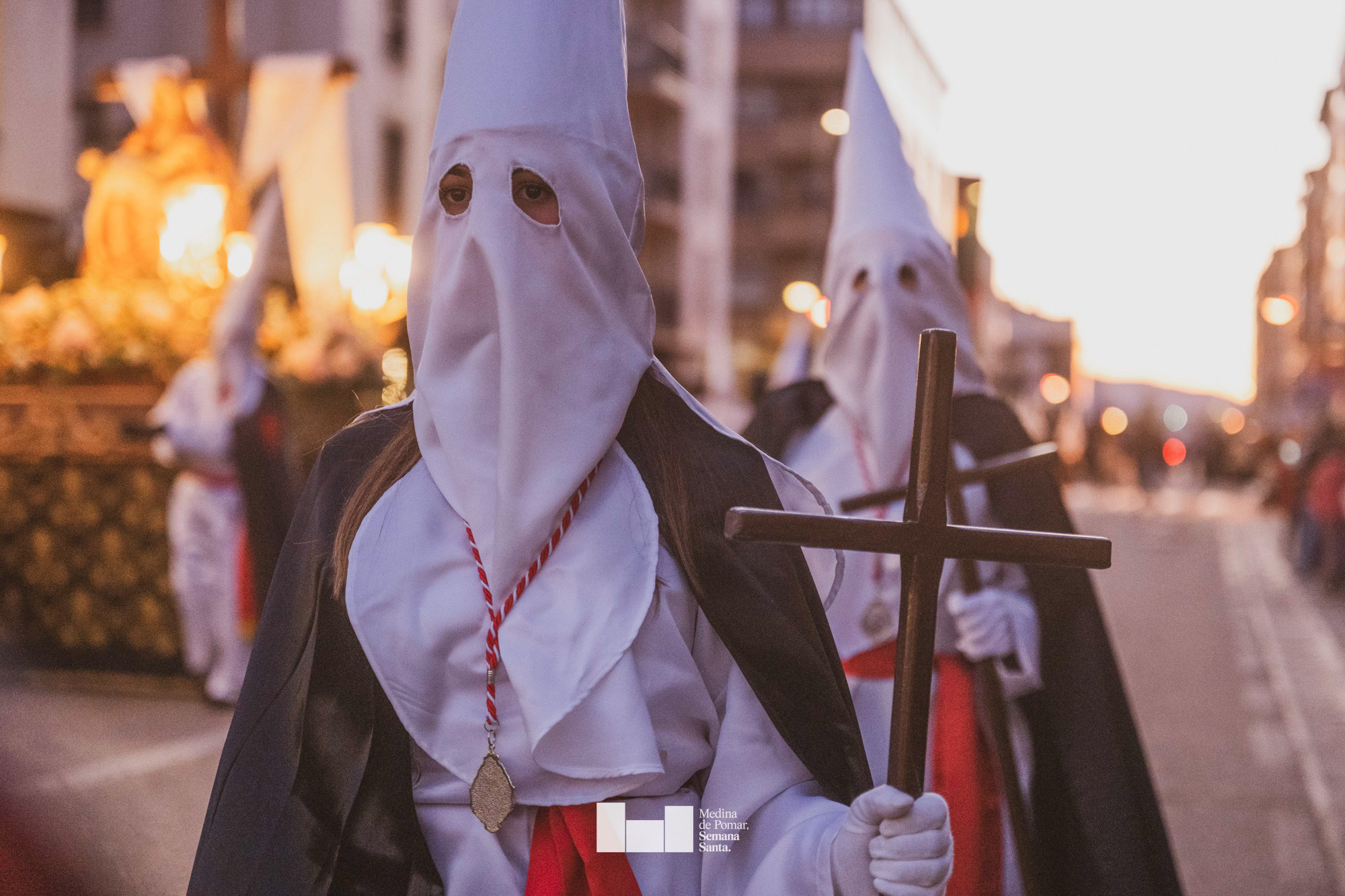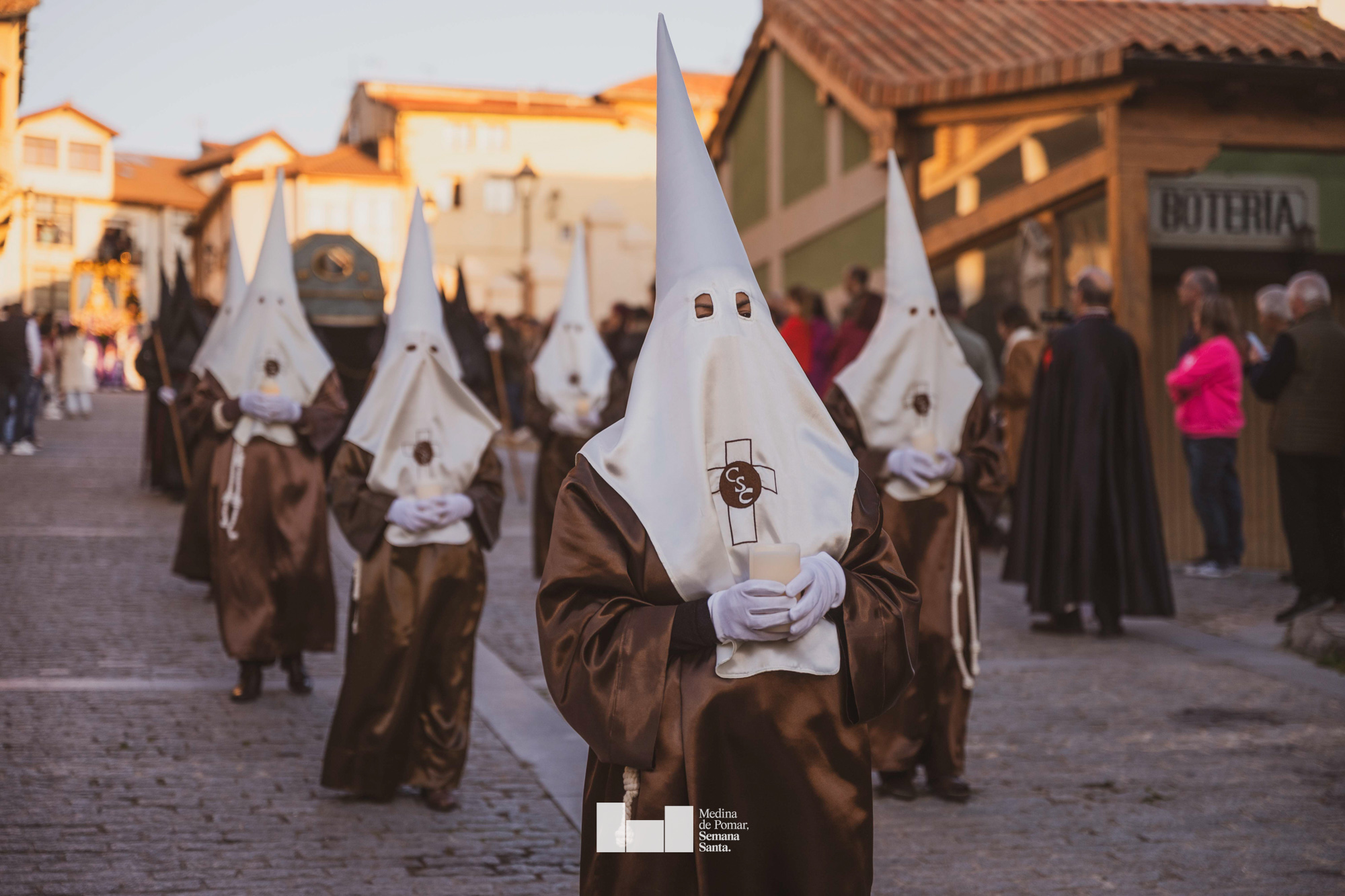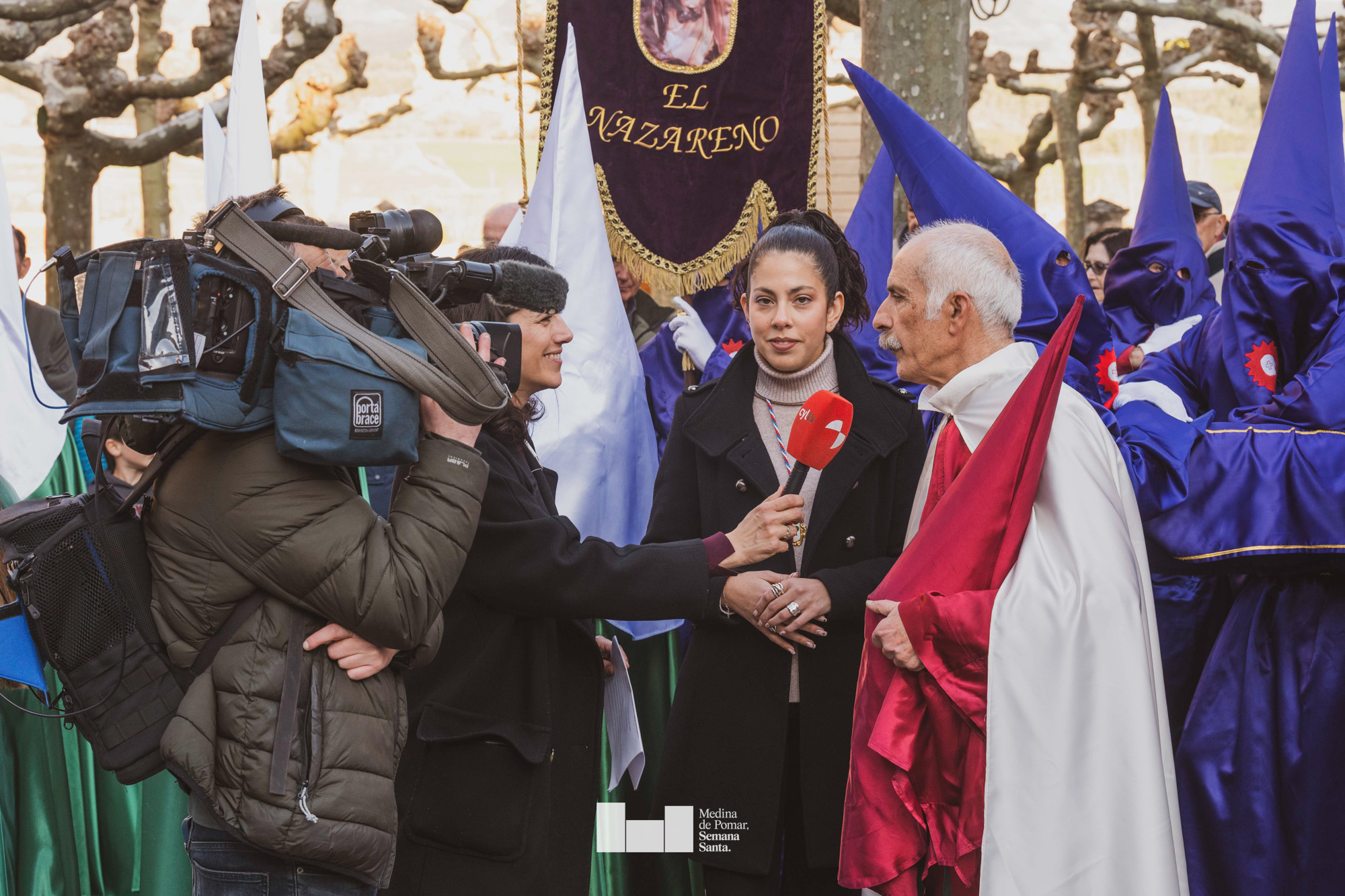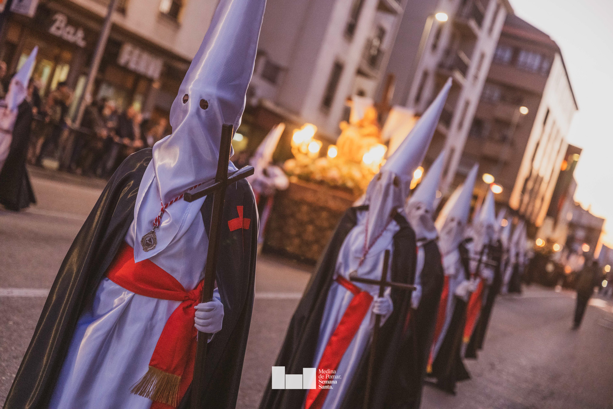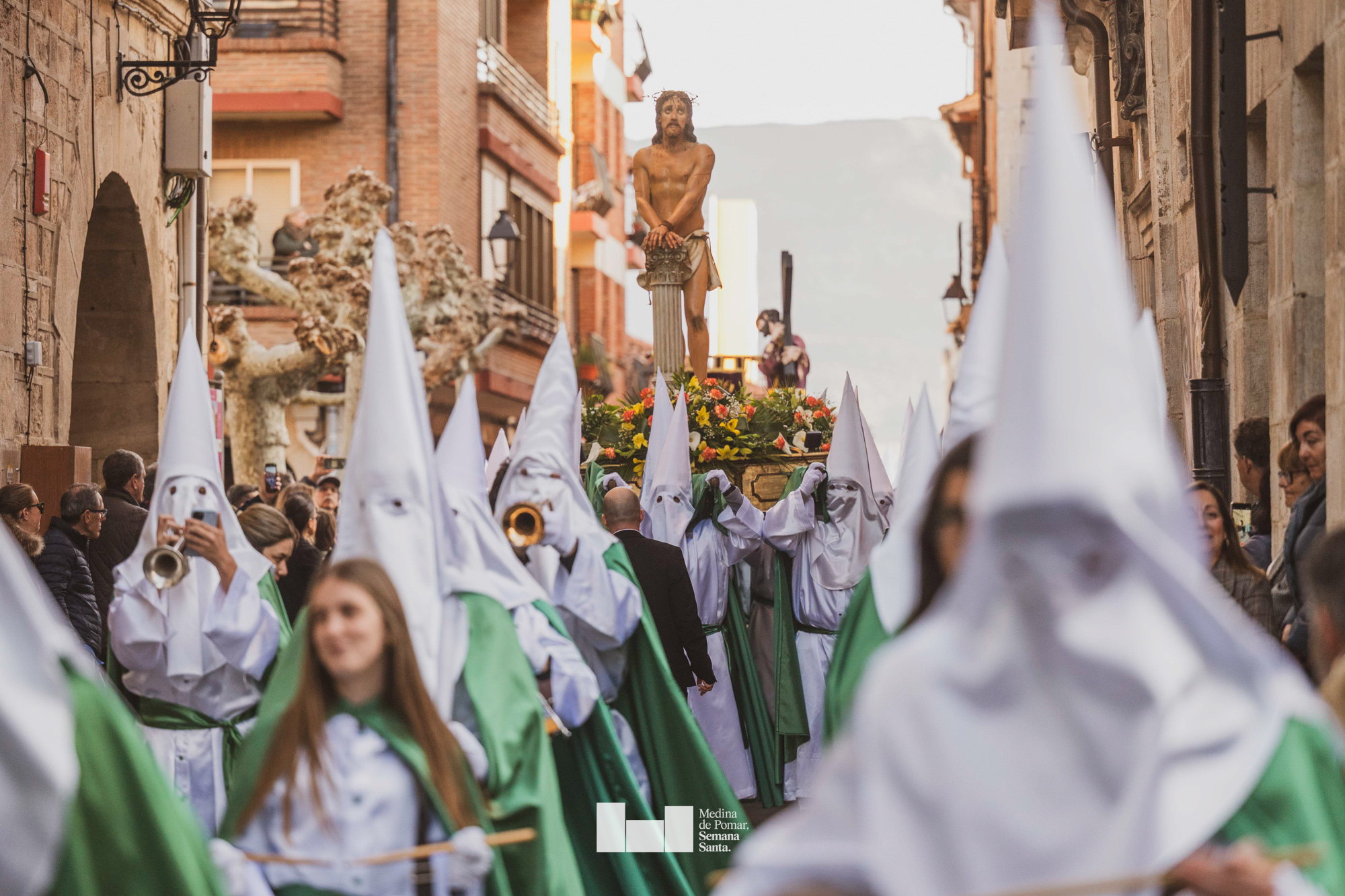 Una multitud de personas se agolpó a lo largo de todo el recorrido en la tarde del Viernes Santo para presenciar el paso de las ocho cofradías con sus pasos así como el Nazareno escoltado por los romanos o la aparición de el nuevo personaje que la procesión ha introducido este año: Simón de Cirene, el Cirineo.